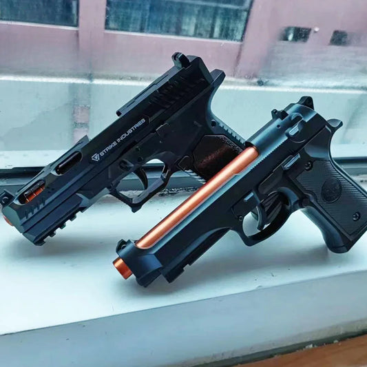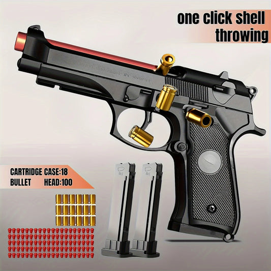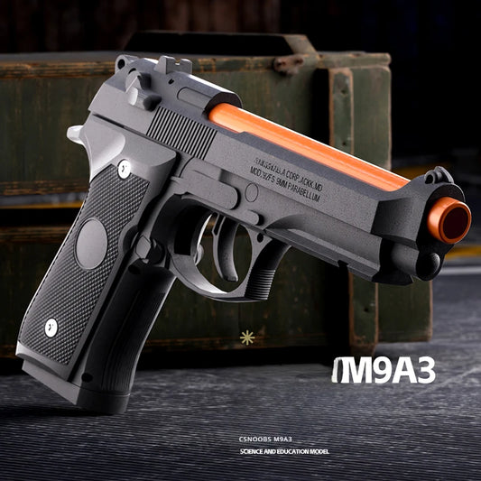 Shell Ejecting Toy Gun Mechanical M9a3 Continuous Fire Pistol Decompression Toy Empty Hanging Soft Bullet Toy Gun Gift