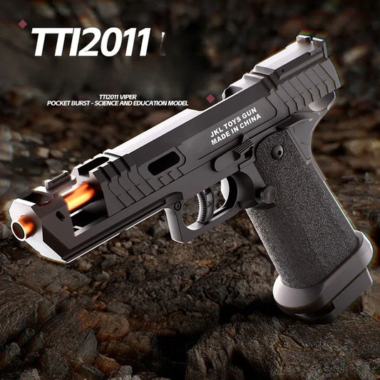 Black Gun TTI Pistol Mechanical Continuous Fire Shell Ejection Empty Hanging Soft Bullet Blaster Toy Gun Gift