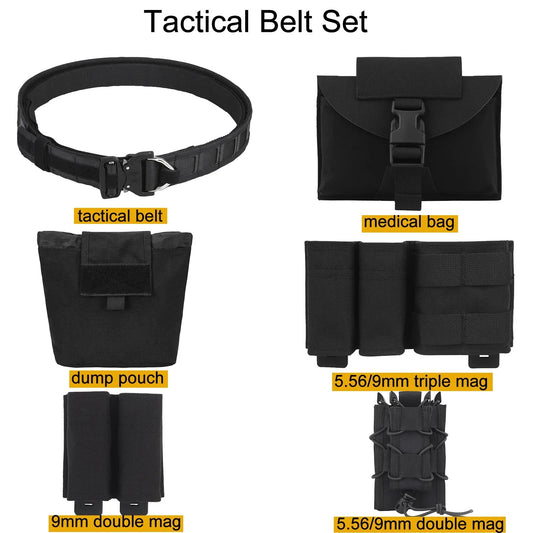 AQzxdc Airsoft Belt with Molle Waist Bag Set, Tactical Belt with 5.56/9mm Pouch, Medical Pouch, Folding Pouch