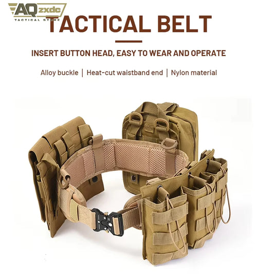 AQzxdc Tactical Assault Belt Set With Triple Magazine Bag & Triple Tool Bag & Multi-function Sundries Bag for Outdoor Training