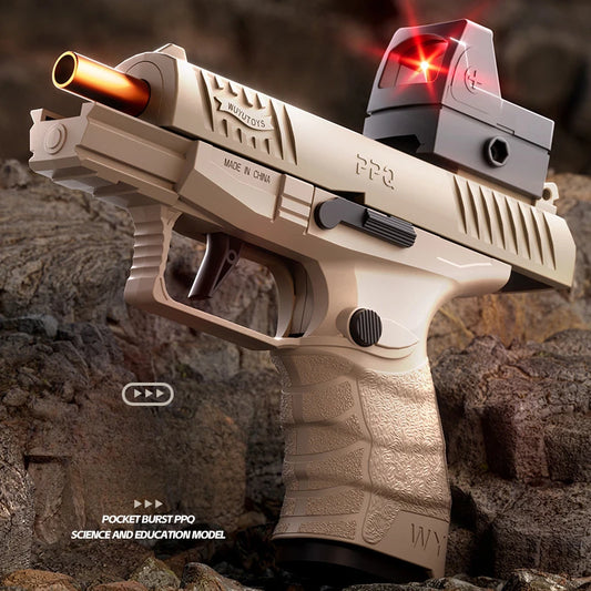 Black Mini PPQ Toy Gun Continuous Firing Shell Throwing Gun Soft Bullet Launcher Blowback Airsoft Pistol for Kid