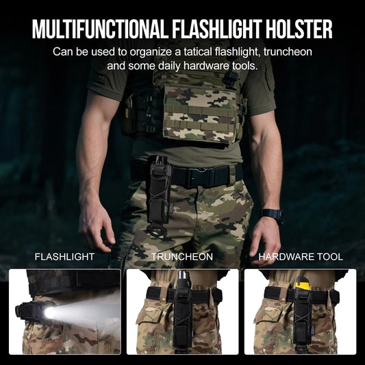 Flashlight Holster Molle Flashlight Holder for Belt Tactical Pouch with Open-top MOLLE Strap for Vertical & Horizontal Carrying