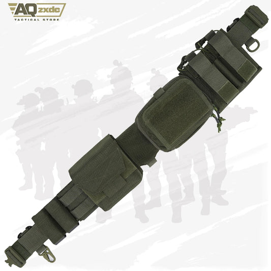 Tactical Assault Belt Set, Detachable Multifunctional 7-Piece Set with Double Magazine Pouch, Map Map, Sundry Bag & Glove Hook