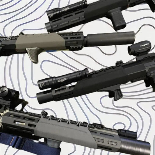 Anti-slip grip surfaces for steady weapon handling in wet or muddy environments.