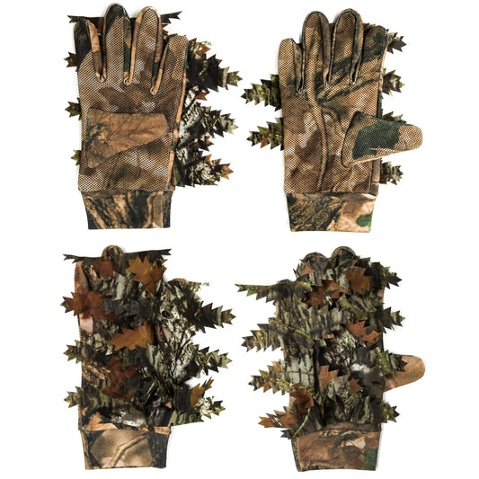 AQzxdc 3D Leafy Camo Hunting Gloves, Anti-Slip Full Finger Woodland Camouflage Tactical Lightweight Gloves for Turkey Hunting