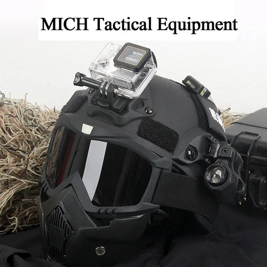 Mich 2000 Tactical Safety Protective Helmet, wiht mask and Goggles Sets, with NVG Bracket and Side Rail for Airsoft Tactical