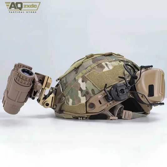 AQzxdc Tactical Ultra-High Cut Gen2 SF Helmet Cover Camo Helmet Cloth W/ Pouch with NVG Battery Pouch Hunting Hybrid Mesh Cover