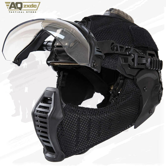AQzxdc Paintball Game Helmet Set with Visor Flashlight Flashing Light Helmet Cover Set for Airsoft Shooting War Games Movie Prop