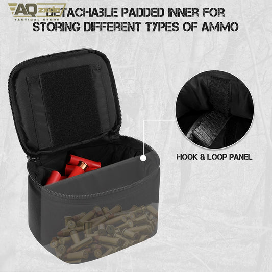Tactical Ammo Bag, Detachable Inner Space Ammunition Carrier Pouch with ID Patches Ammos Transportation Bag for Pistol Rifle
