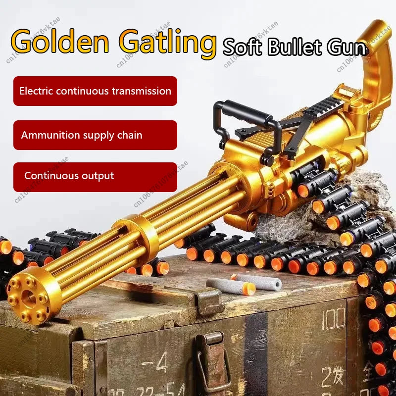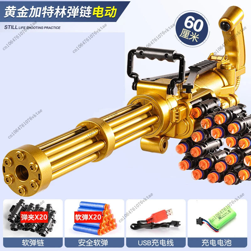 60CM electric continuous firing gold Gatling children's ammunition chain soft bullet gun mechanism submachine toy gun