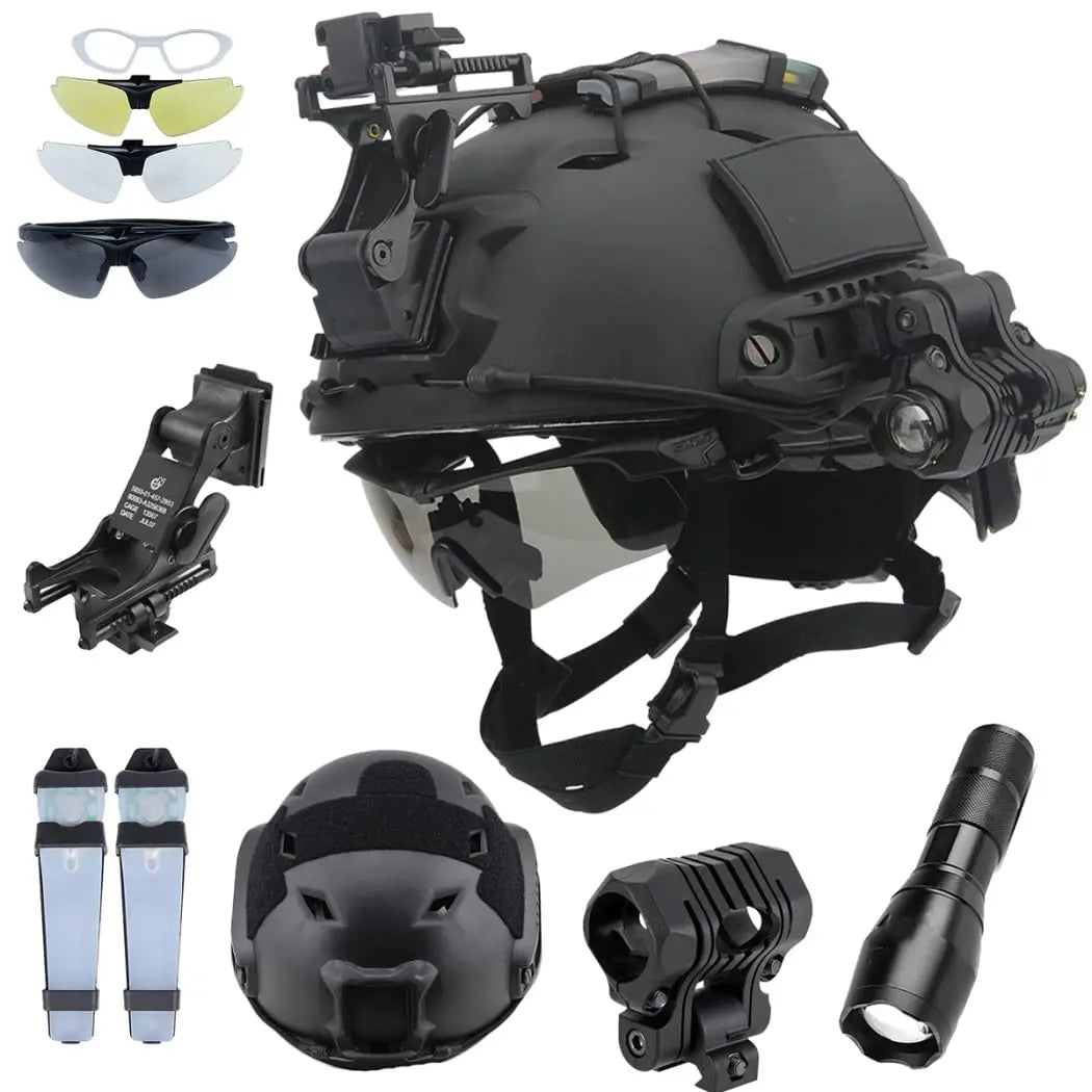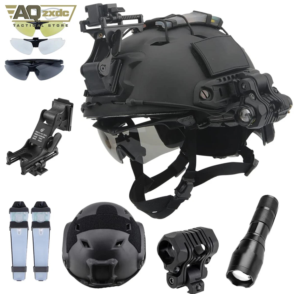 Airsoft Helmet Set, Tactical Goggles Helmet Light Signal Light Tactical Flashlight and Night Vision Goggle (Nvg) Mount Bracket