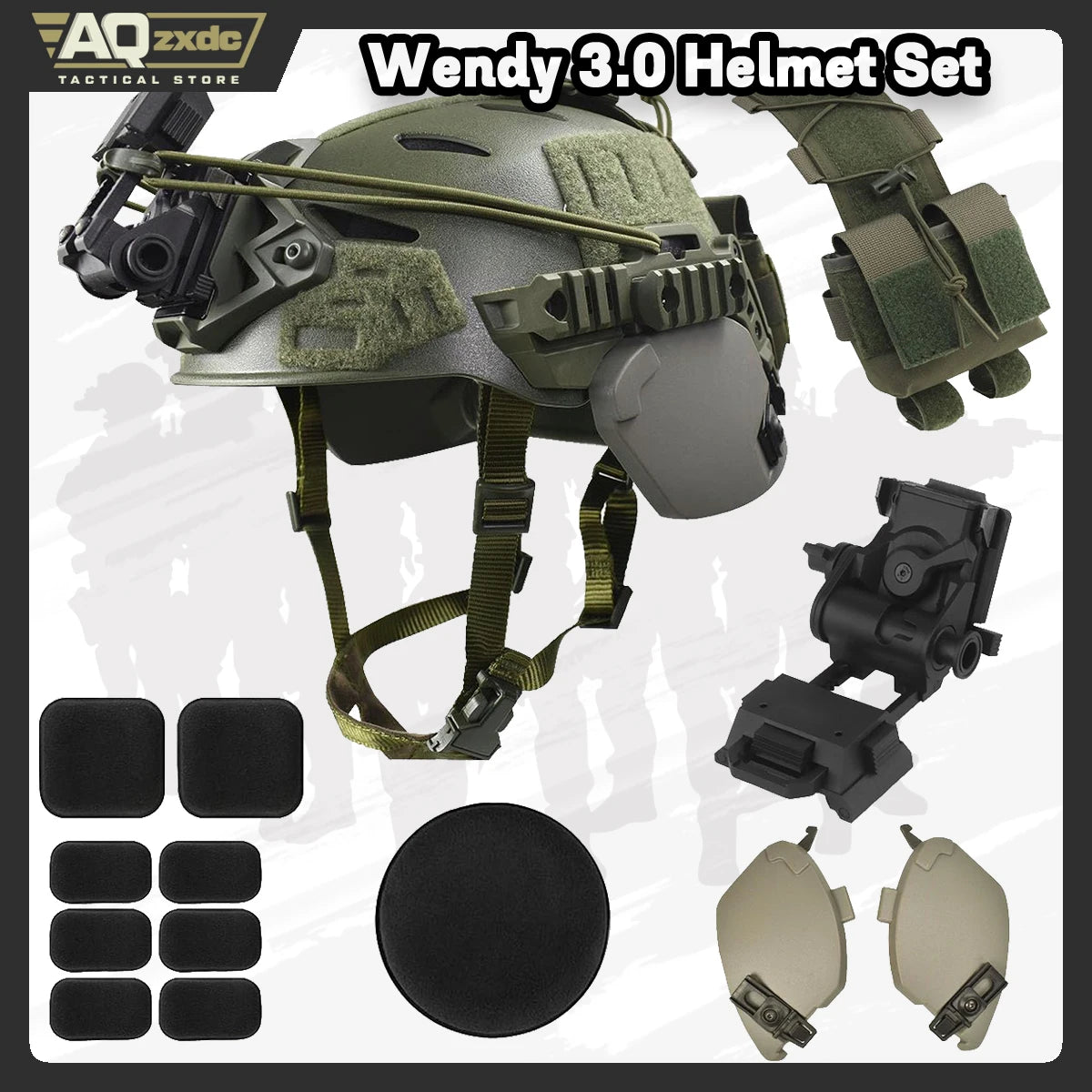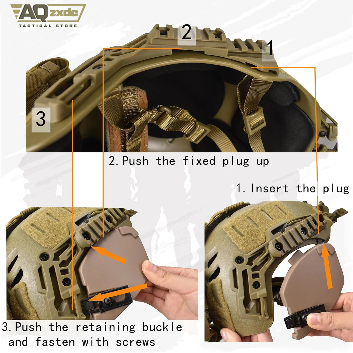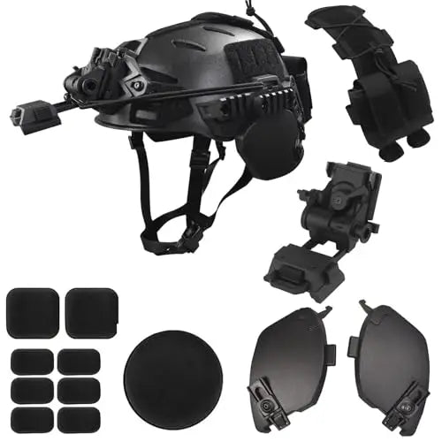 Airsoft Helmet Set with Rail 3.0 Adjustable Chin Strap/Protective Ear Side Cover/Night Vision Mount and Helmet Battery Pouch