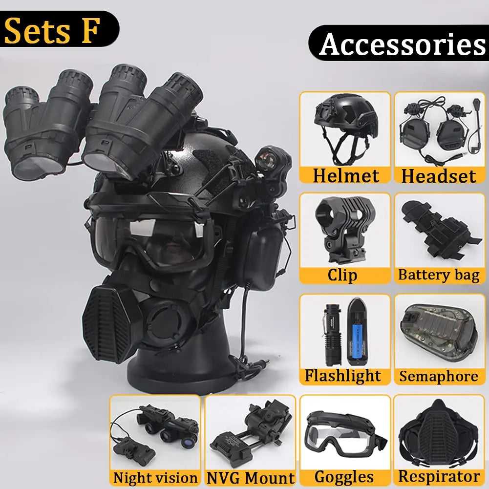 AQ Heavy-Duty Tactical Helmet Set, with Paintball Mask & Telescope Model & Soundproof Headphones, Aluminum Alloy L4G24 NVG Mount