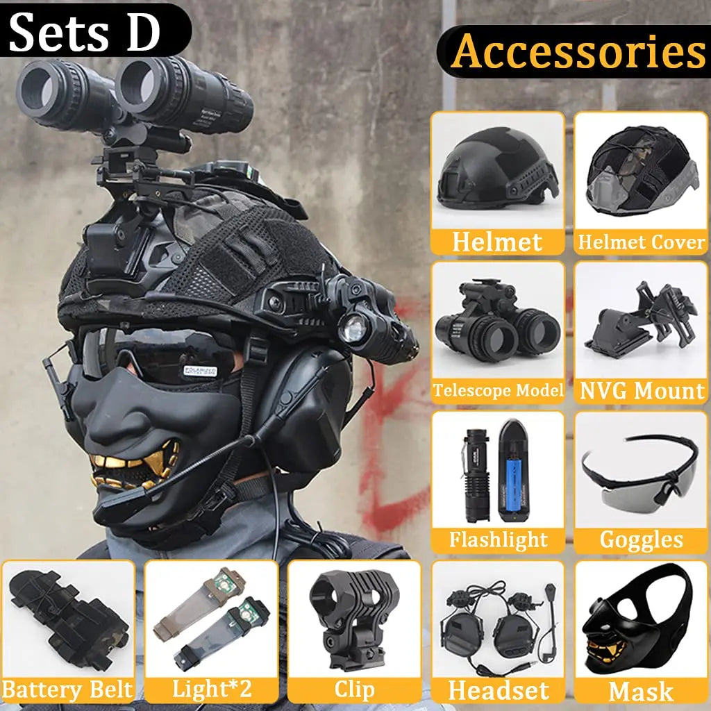AQ Tactical Helmet Sets, Outdoor Gear with Military Headset & Binoculars & Goggles, Heavy Men's Full Set of Paintball Protective
