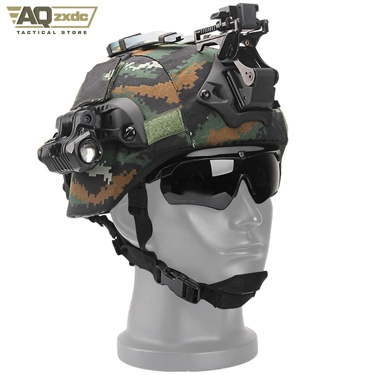 AQzxdc Airsoft Helmet Set (7mm), with Tactical Goggles, Helmet Cover, PVS15/18 NVG Mount, Helmet Signal Light, Flashlight