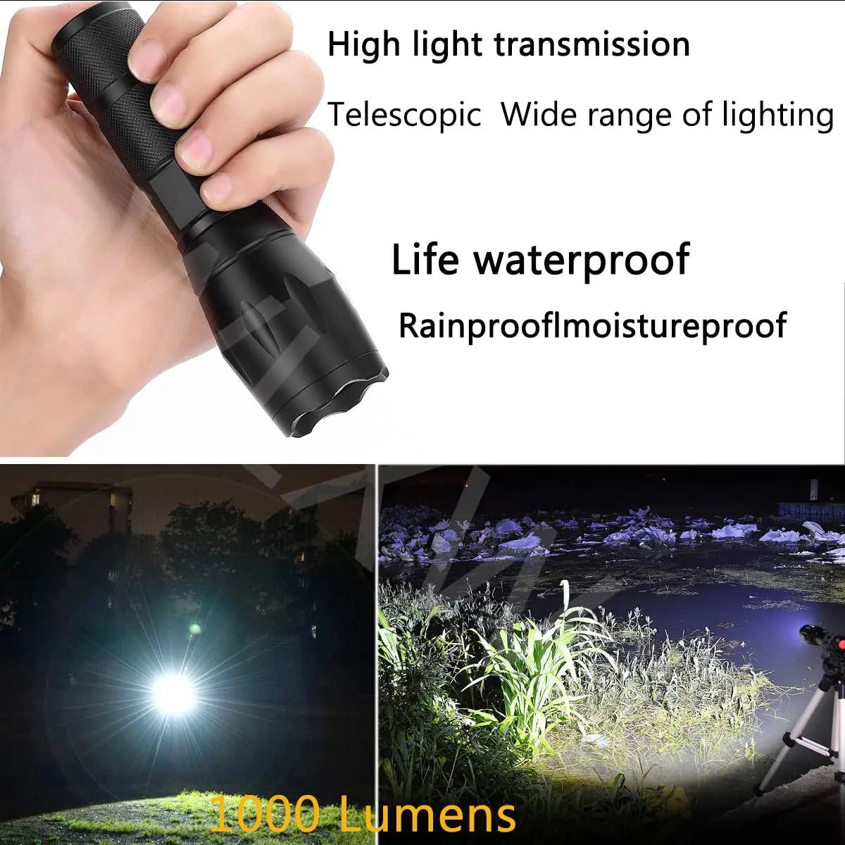 ★ The flashlight is constructed of durable aircraft grade aluminum, wear-resistant, drop-resistant and waterproof. It is more durable than ordinary mini flashlights. High / low / strobe mode, adjustable focus, support zoom in and zoom out, most suitable for outdoor sports.