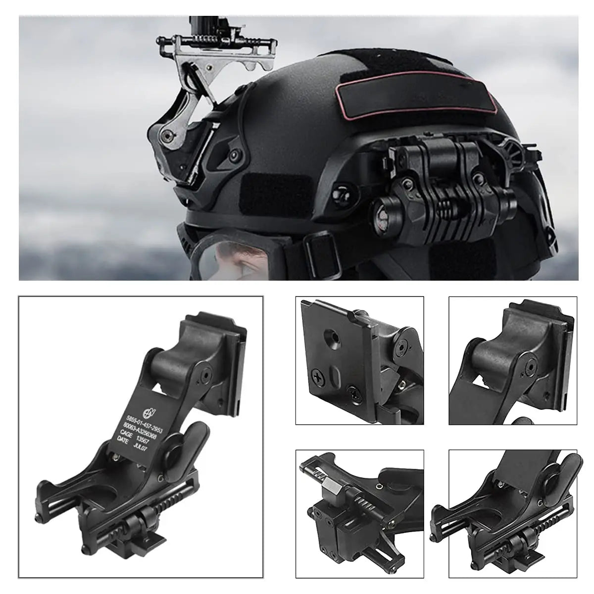 ★ Metal constructed Night Vision Goggle (NVG) Mount, up and down design, adjustable NVG arm angle change, compatible with PSV-7 or PSV-14.