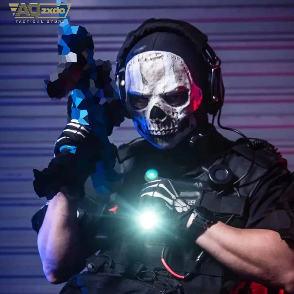 AQzxdc Cod Ghost mask V2 - Operador MW2 Airsoft COD Cosplay Airsoft Tactical Skull Full Mask with Reaper Ghost Luminous Gloves