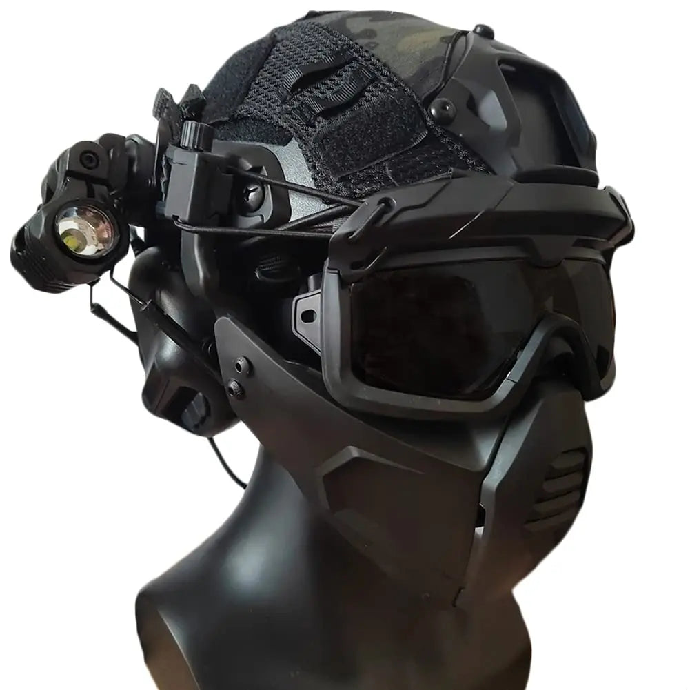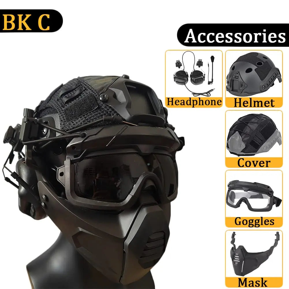 AQzxdc FAST Helmet Set, with Airsoft Mask and Goggles, Sound Pickup and Noise Canceling Headphones, Flashlight & Helmet Cover