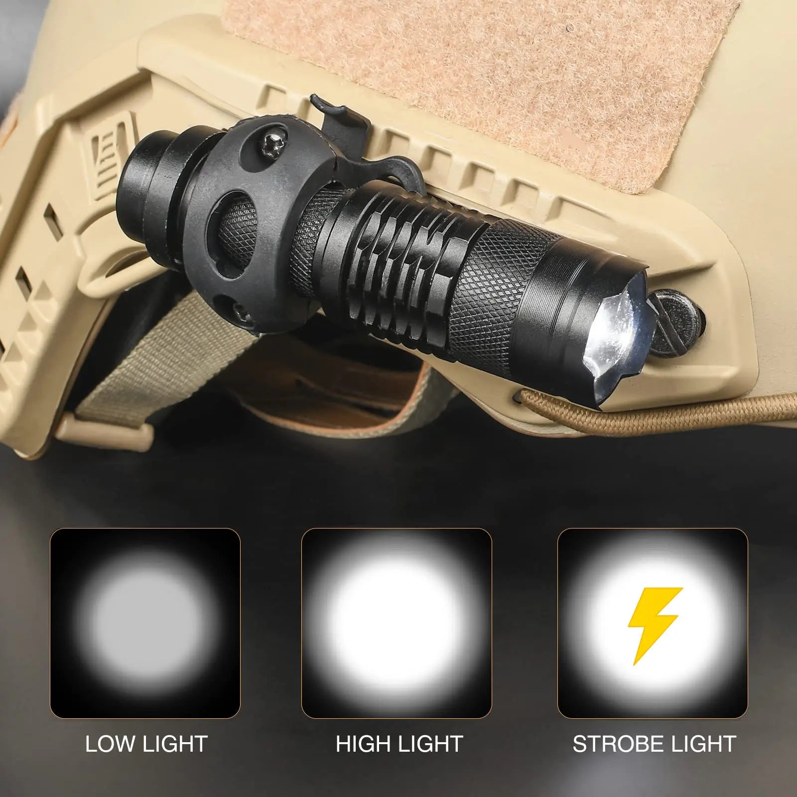 AQzxdc Military Helmet Light, Mini Clampable Tactical Flashlight with, Compact Helmet Mounted LED with Fast Helmet Clip Rail