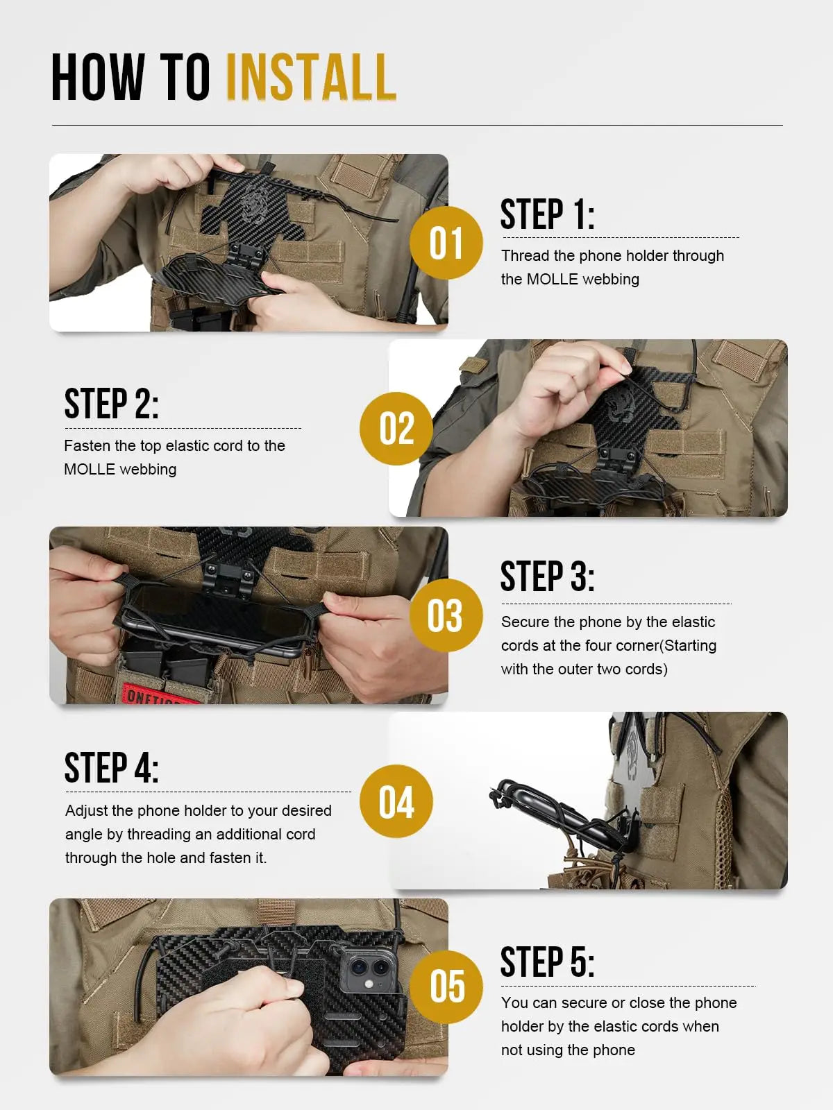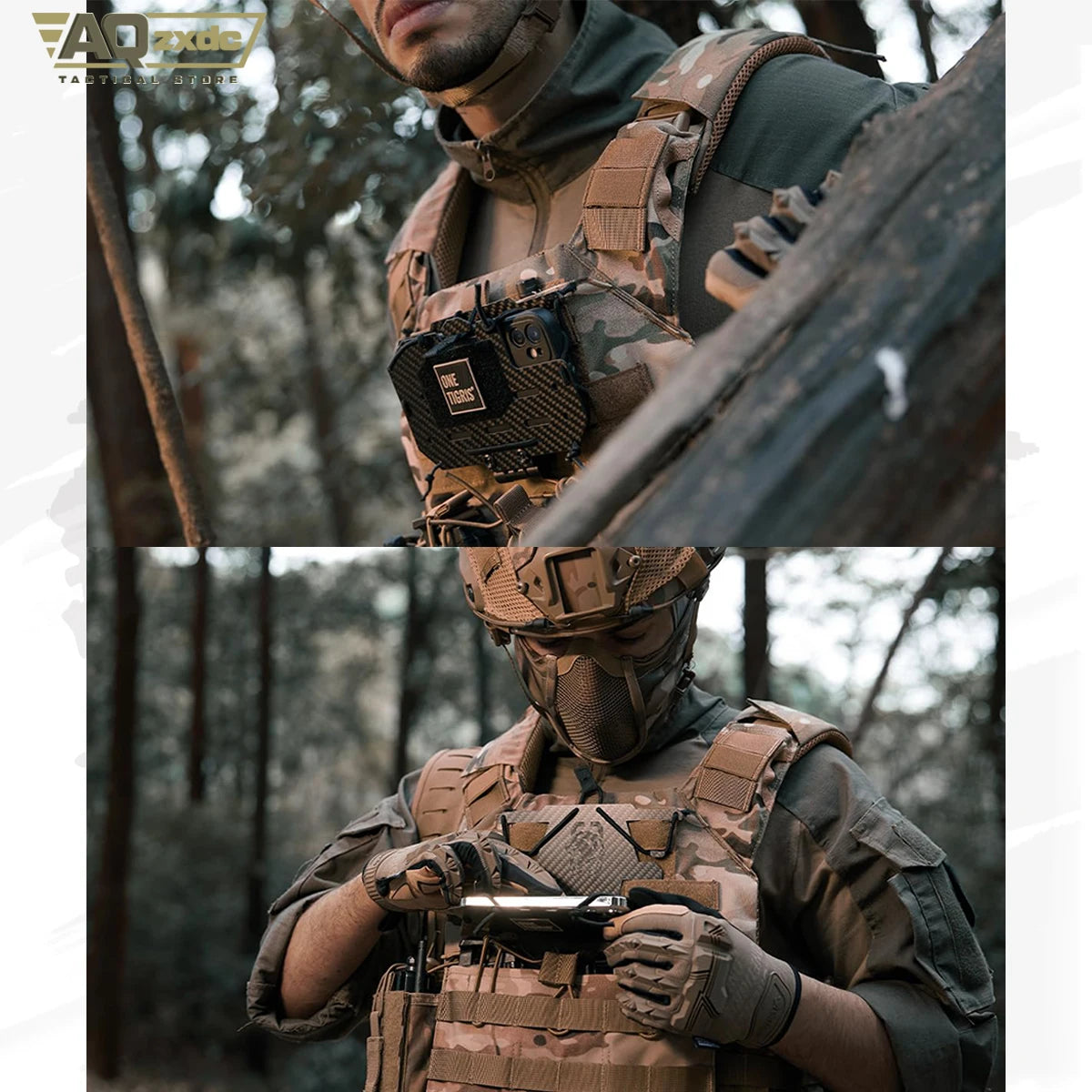 AQzxdc MOLLE Phone Holder, Plate Carrier Accessories Tactical Vest Phone Holder Phone Chest Mount for Cellphone Screen 4.7"-6.8"