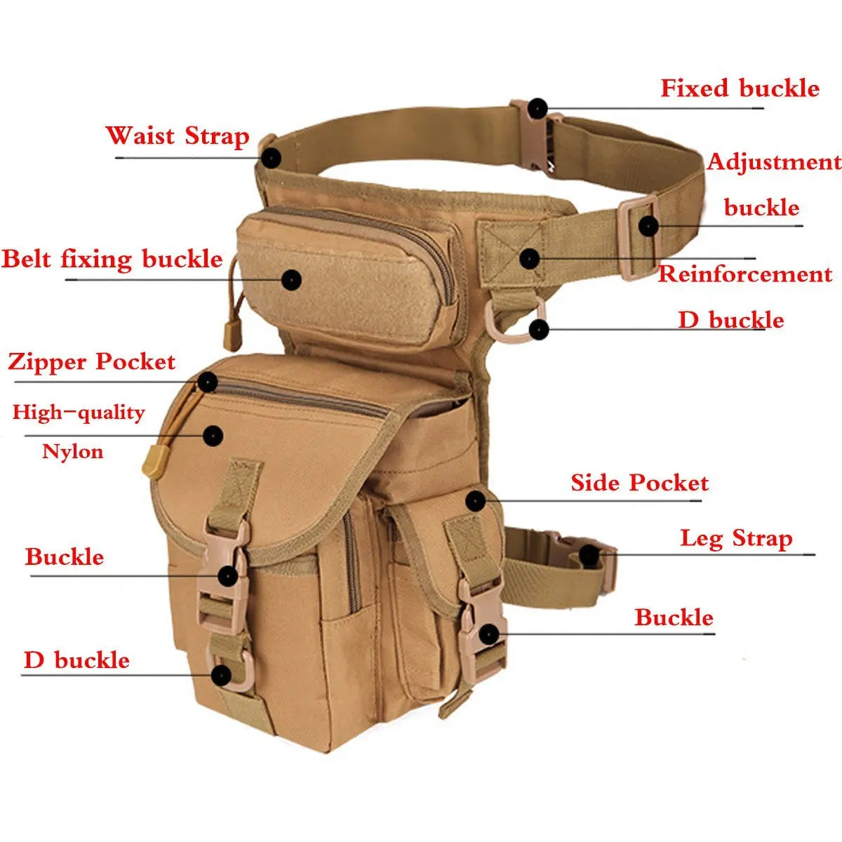 AQzxdc Multi-Purpose Hiking Waist Fanny Pack Tactical Military Drop Leg Bag Running Backpack Outdoors Cycling Pouch Shoulder Bag