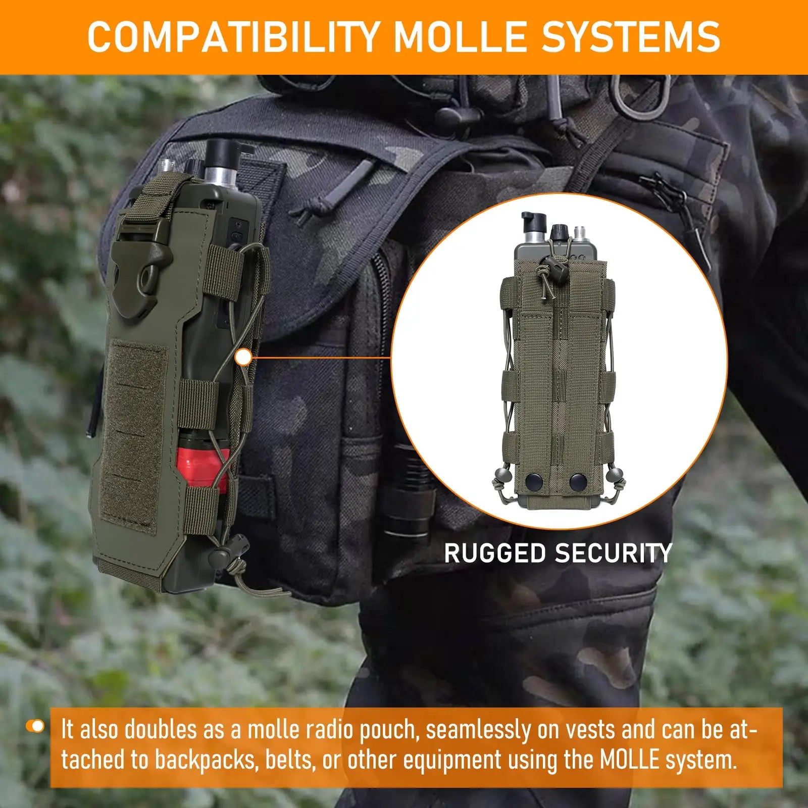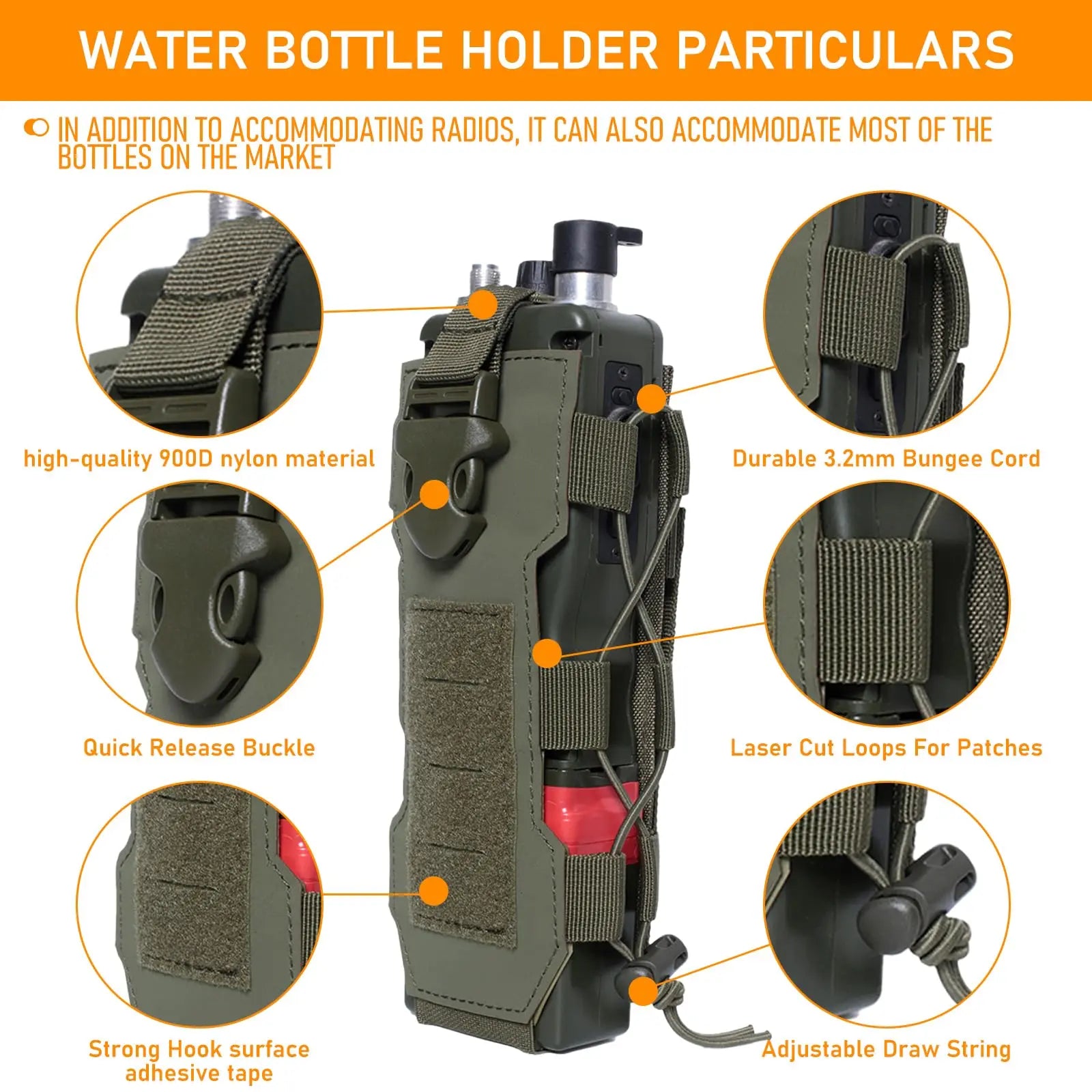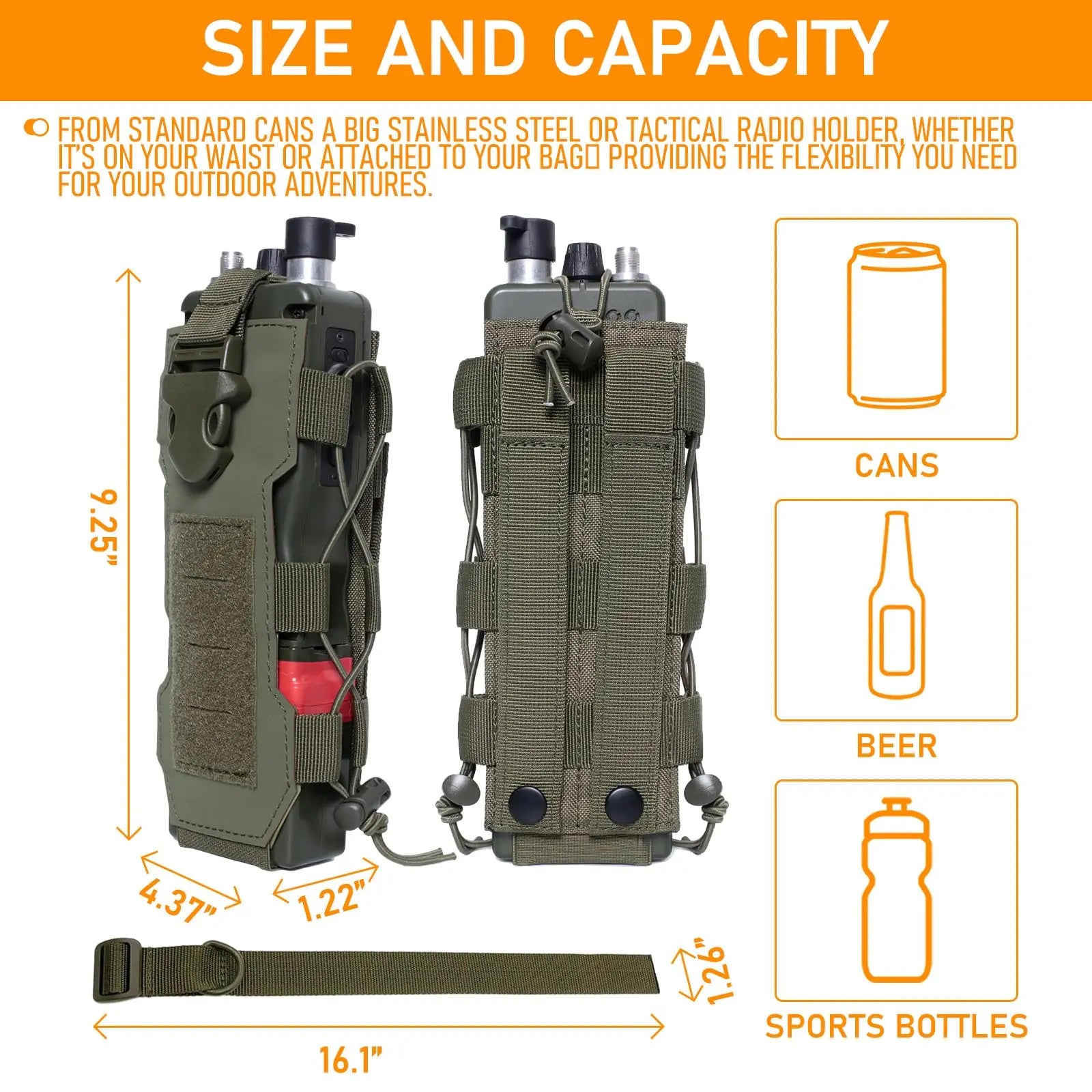 AQzxdc Outdoor Molle Radio Pouch Holder & Molle Adjustable Water Bottle Holder 40 oz, Tactical Bottle Pouch for Backpack Belt