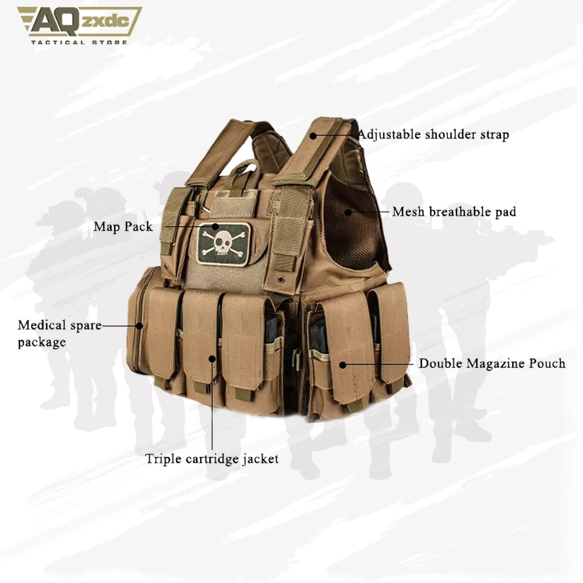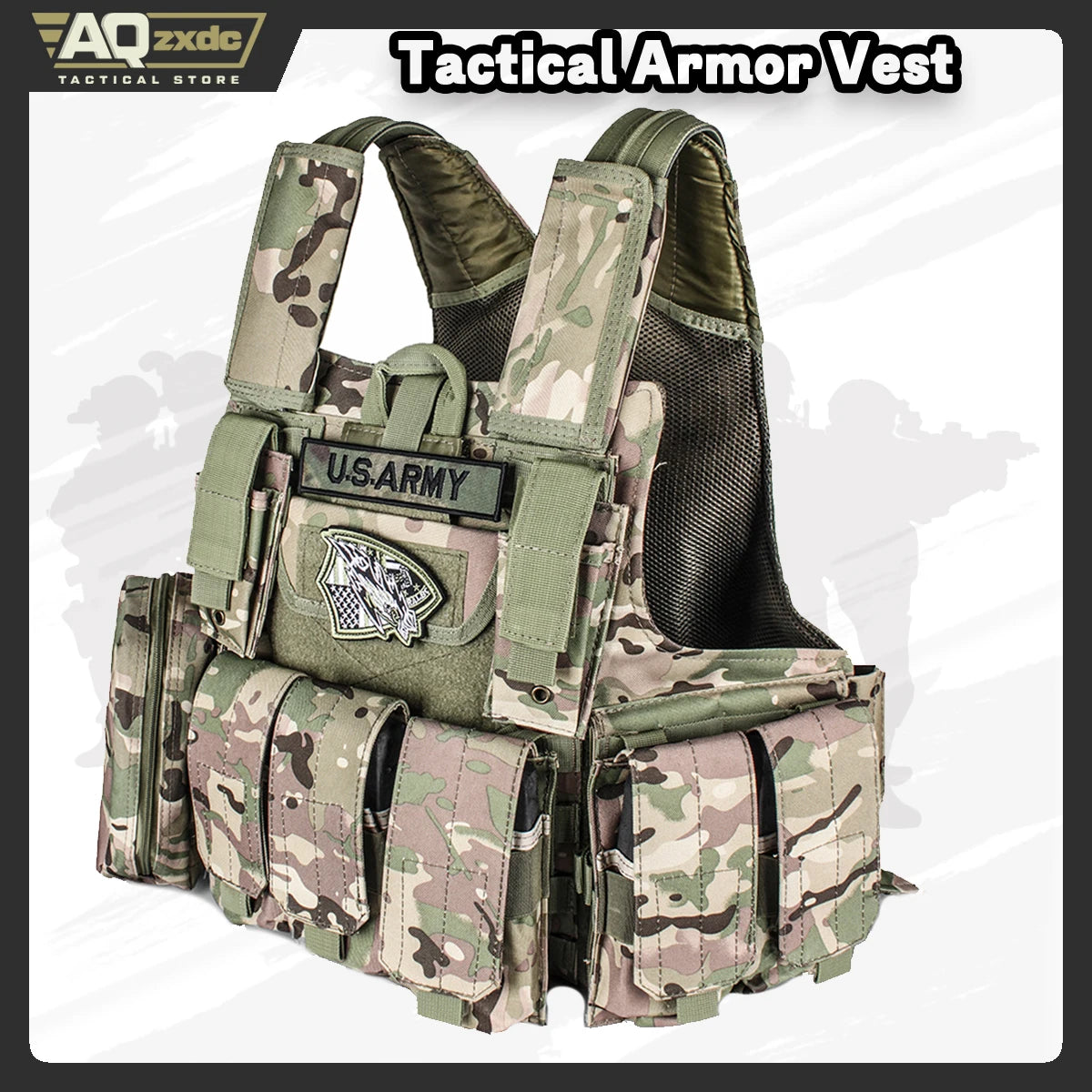 AQzxdc Outdoor Tactical Vest Molle Training Chalecos Tactico Combat Camouflage Plate Carrier Vest for Airsoft Paintball War Game
