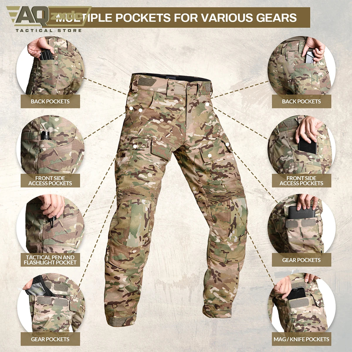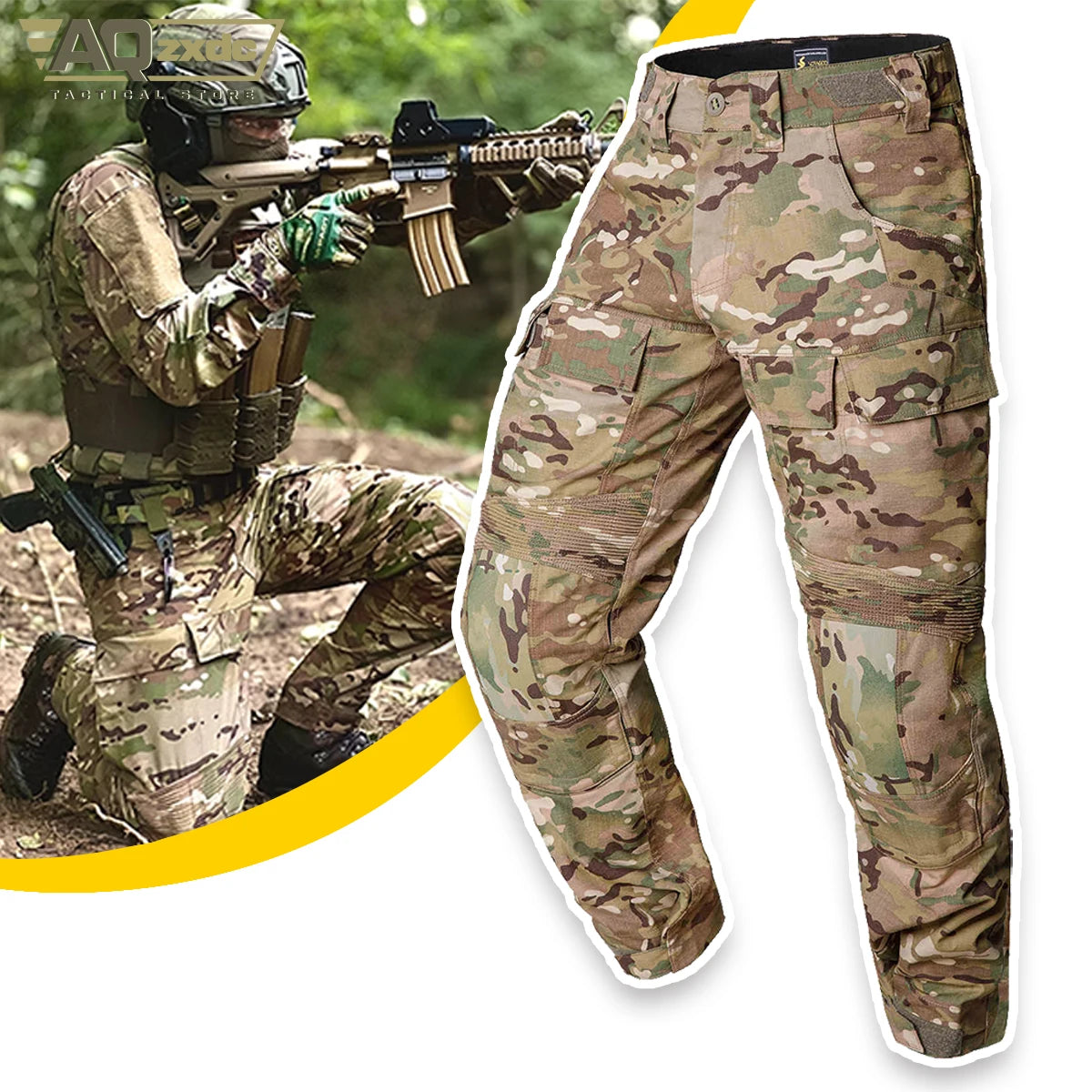 AQzxdc PTG Tactical Clothing G3 Knee Pads Pants Men's Camo Combat Paintball Removable Knee Pads Outdoor Activities Pant