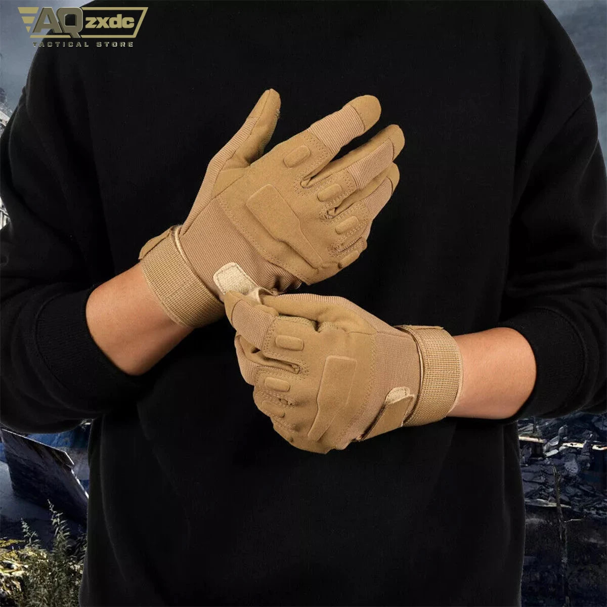 AQzxdc Tactical Assault Training Gloves Airsoft Full Finger Gloves with Glove Buckle & Knuckle Protection for Riding, Hunting