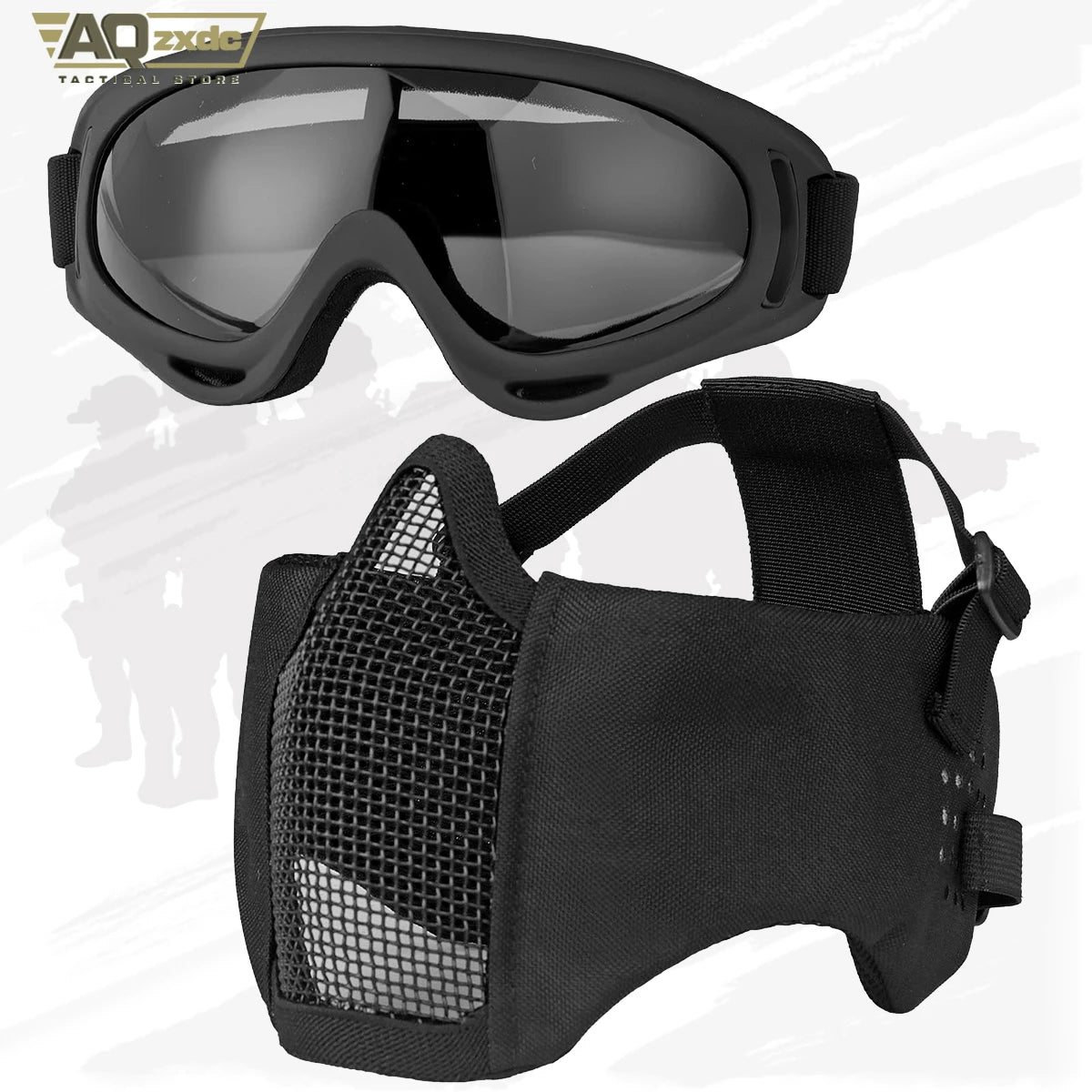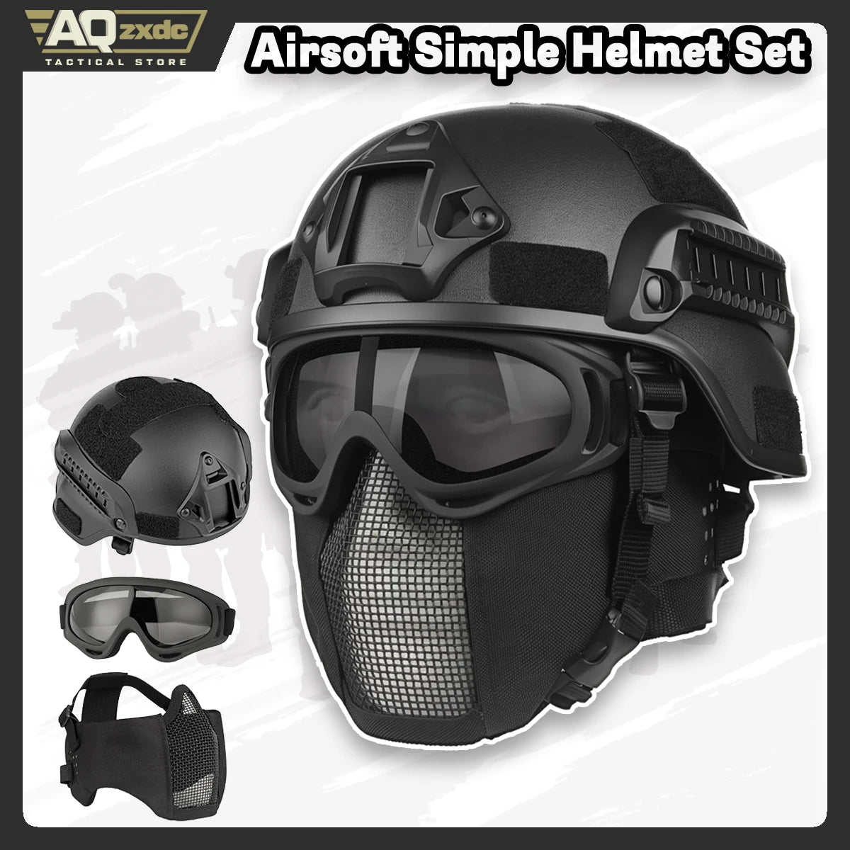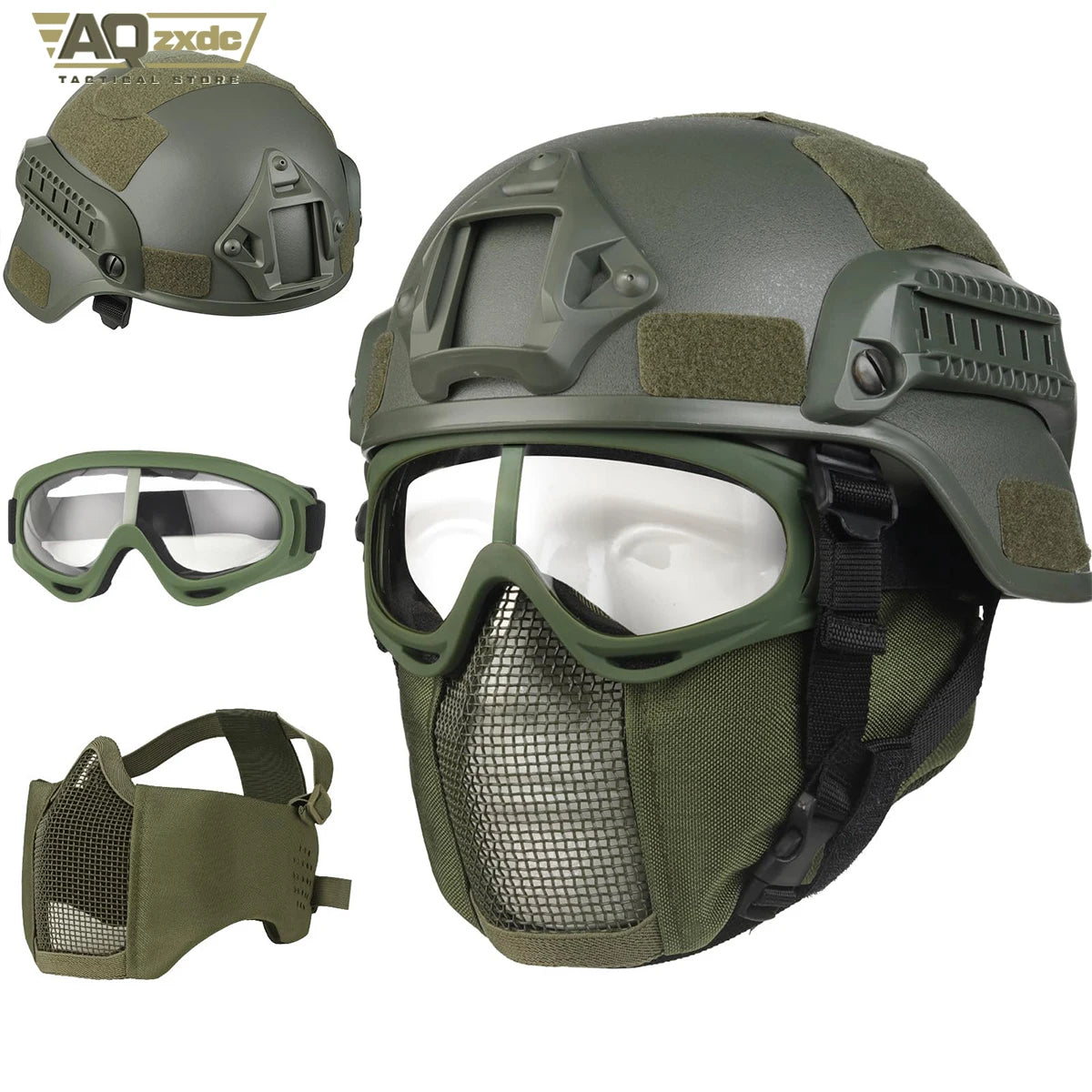 AQzxdc Tactical Helmet Set, Airsoft Mask Mesh Elastic Balaclava Mask, Anti Fog Airsoft Goggles, Tactical Full Face Protection