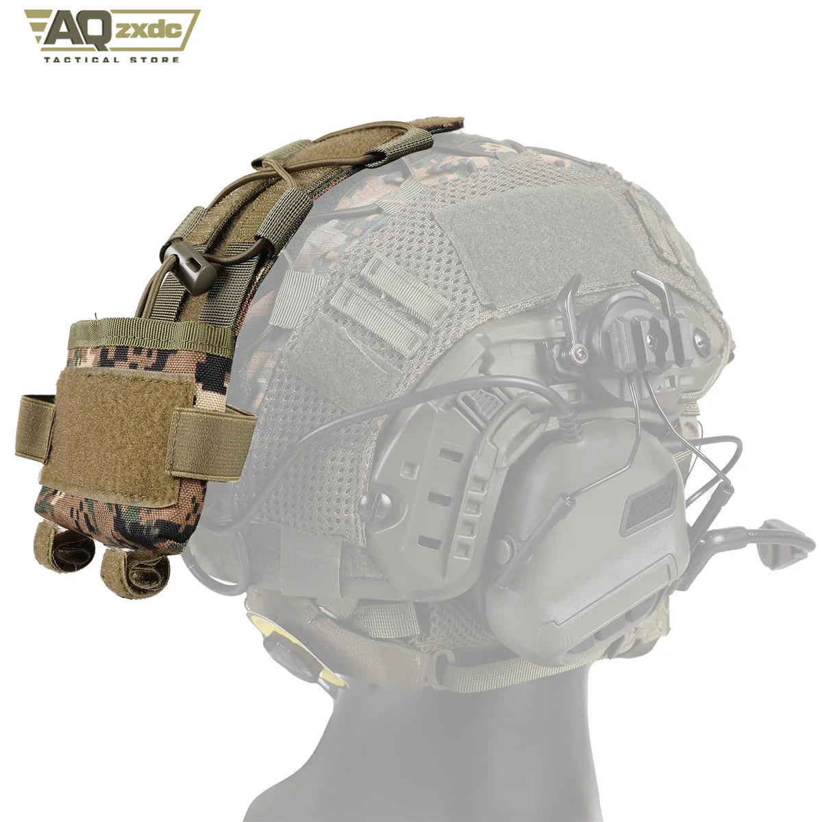 Battery Pouch: Tactical helmet bag with adjustable shock-absorbing rope fixation device, safe to carry identification flash or combat tourniquet, external ring for chemical lights, and ring stack surface for unit patches or other hook and loop accessories.