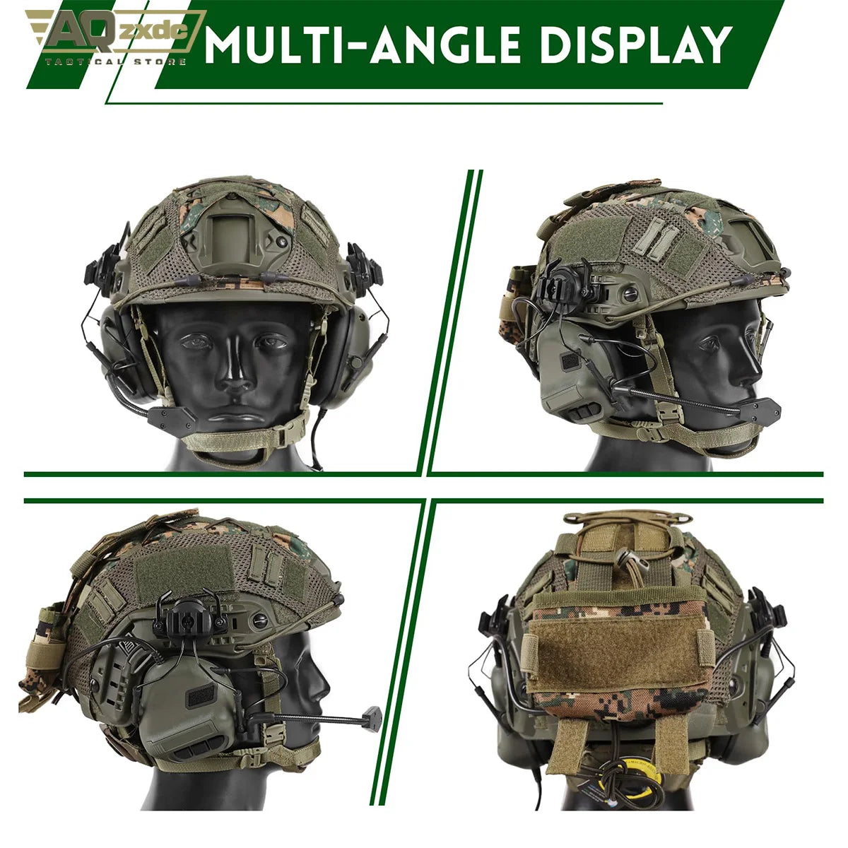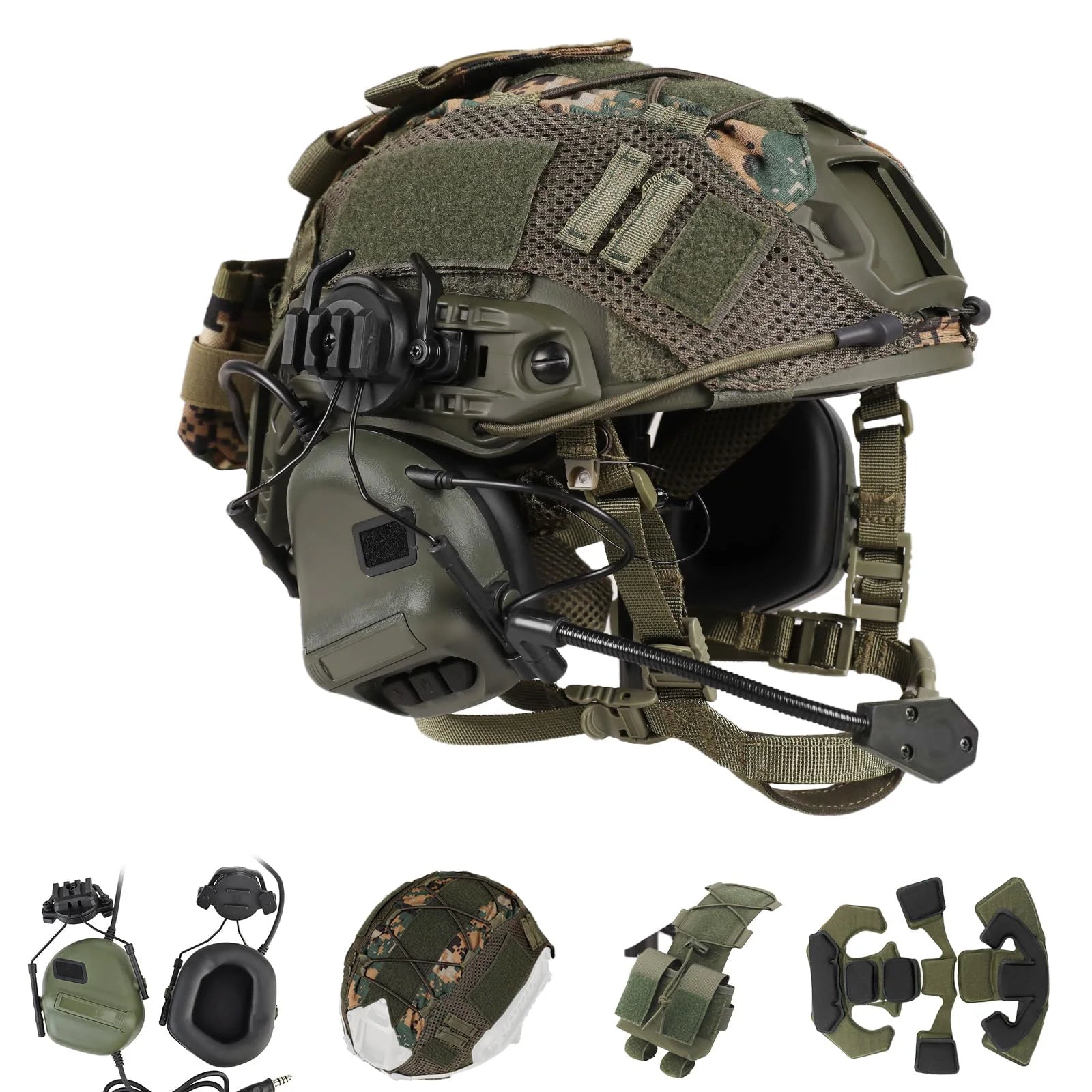 AQzxdc Tactical Helmet with Headset,4in1 Upgraded Adjustable with Helmet Cover for Airsoft Cosplay Military Gear War game