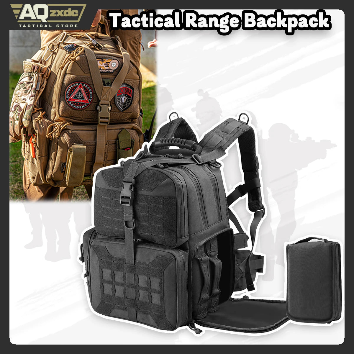 AQzxdc Tactical Range Backpack, Gun Bag for Handguns and Ammo, 3 Pistol Carrying Cases for Hunting Shooting Airsoft CS War Game