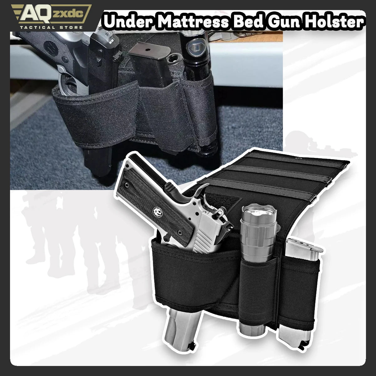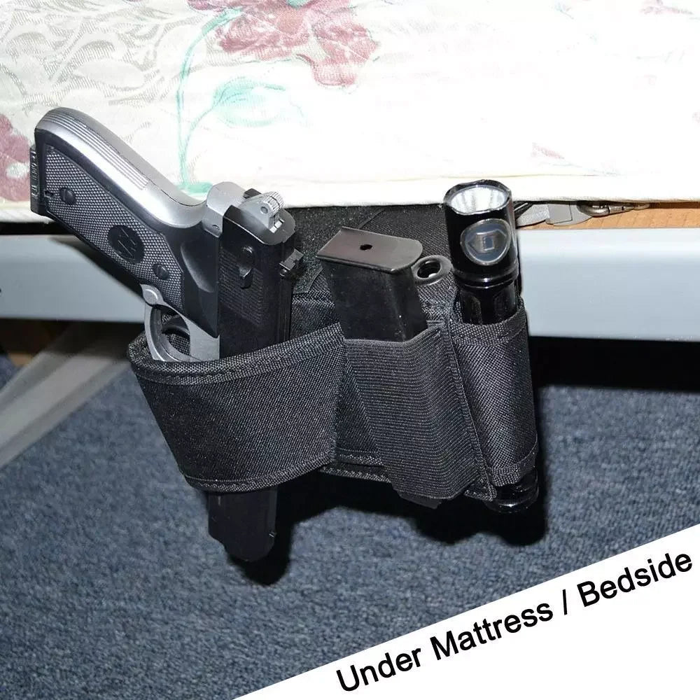 AQzxdc Tactical Under Mattress Bed Handgun Holster with Tactical Flashlight Loop Under Mattress Bed Pistol Holster