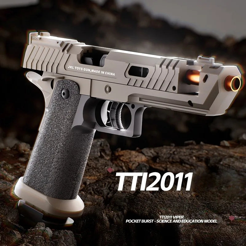Black Gun TTI Pistol Mechanical Continuous Fire Shell Ejection Empty Hanging Soft Bullet Blaster Toy Gun Gift