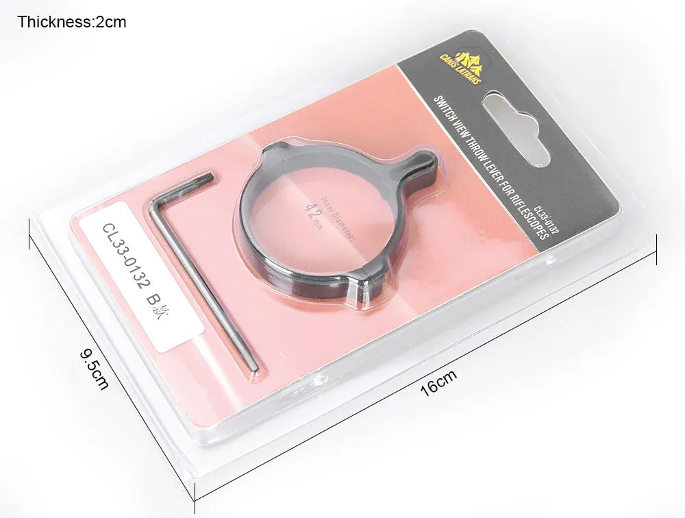 This throw lever is specifically crafted to fit scope magnification rings up to 42mm in diameter, ensuring a tight and secure fit. Once installed, it provides smooth and consistent rotation, giving you immediate access to the exact magnification level you need.