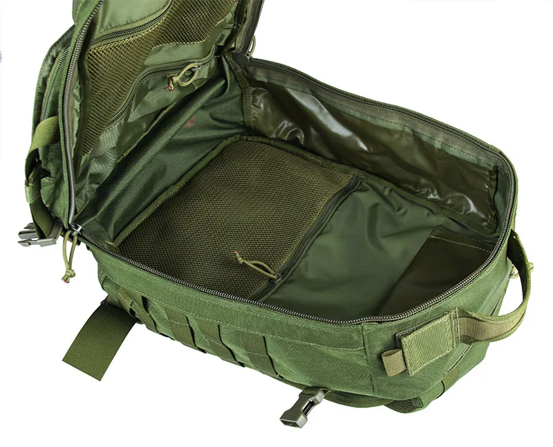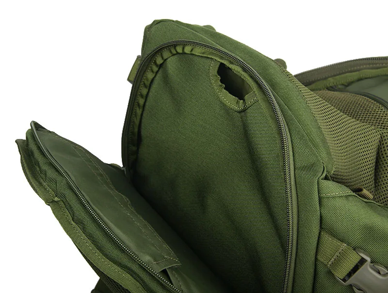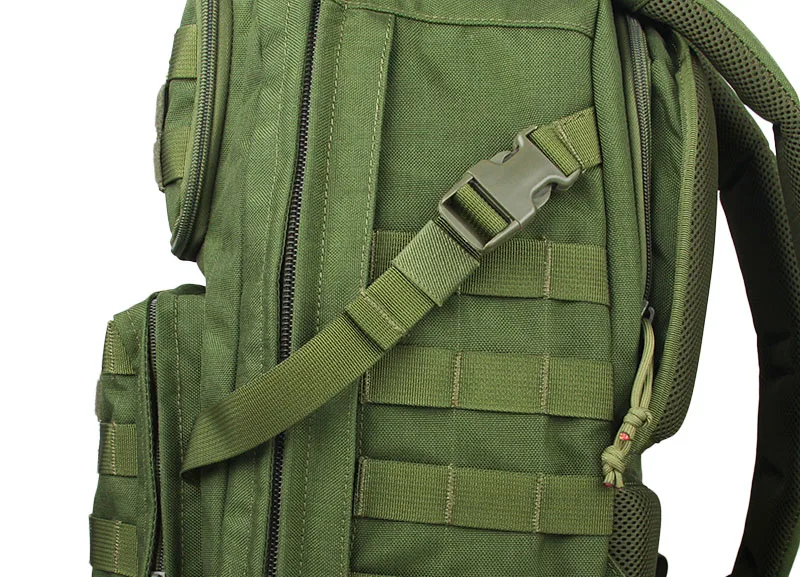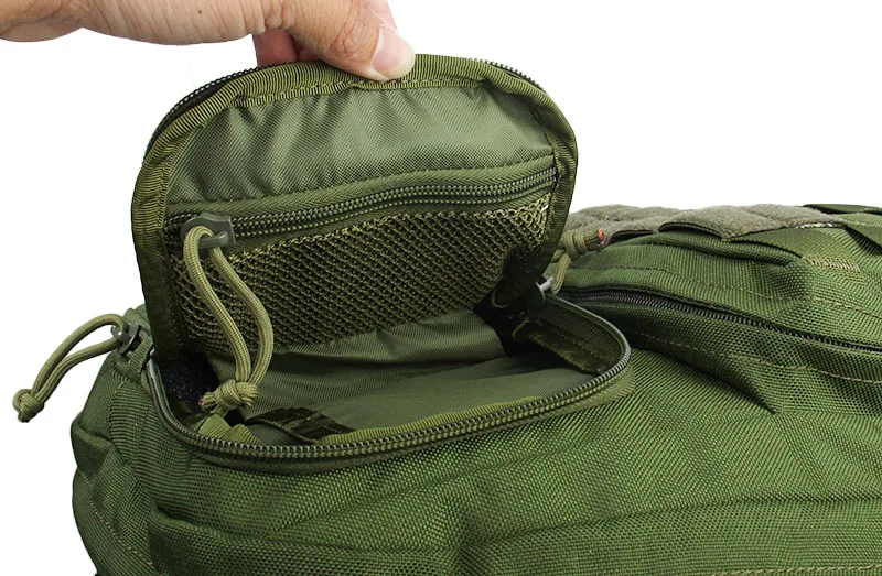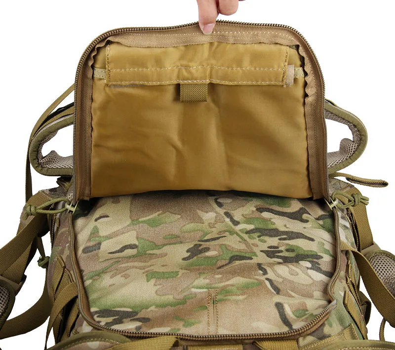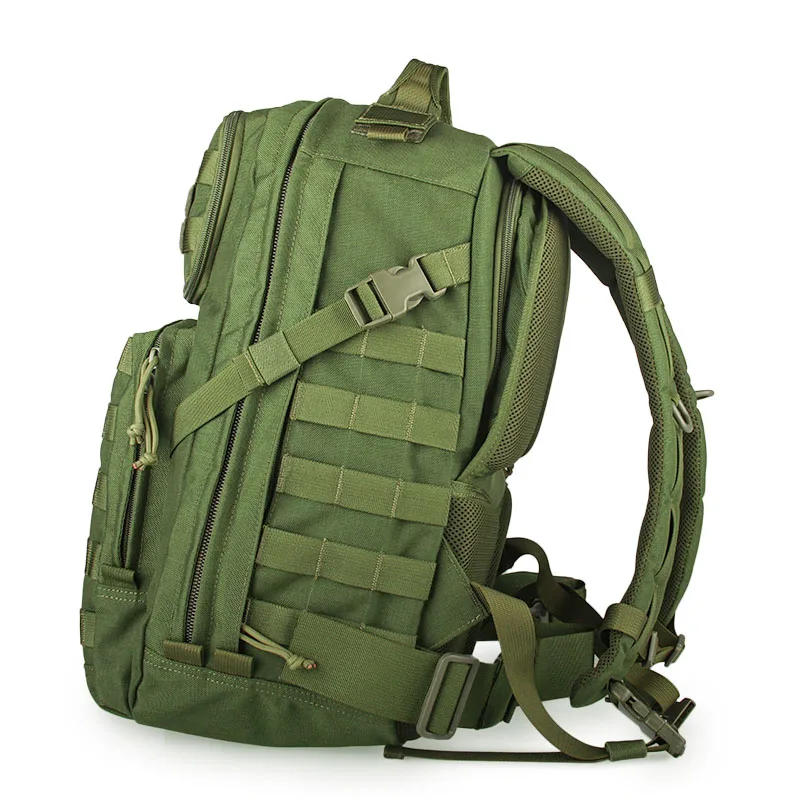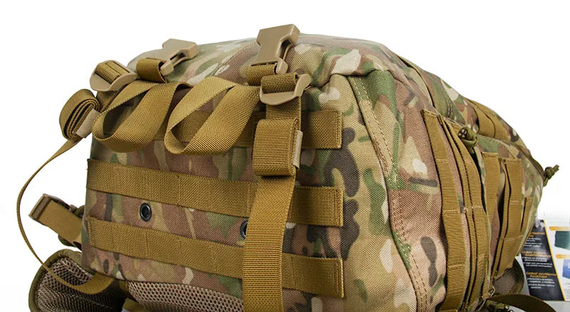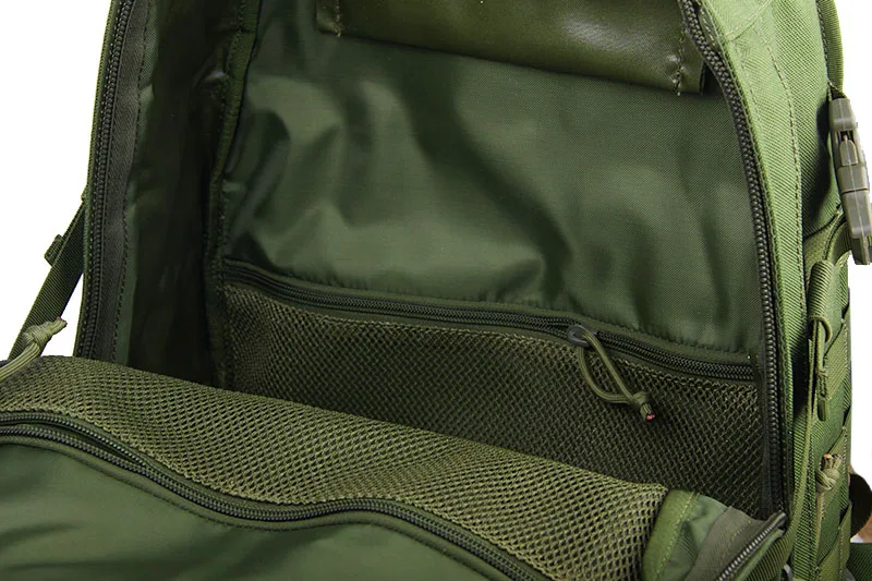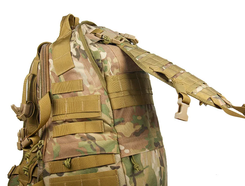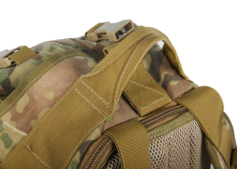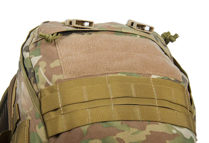 The tactical design incorporates a MOLLE extension system, allowing you to attach additional pouches, tools, or modular accessories. This flexibility lets you customize your setup based on mission requirements or personal preference. The front of the pack includes Velcro panels for patches, identifiers, or small modular gear.