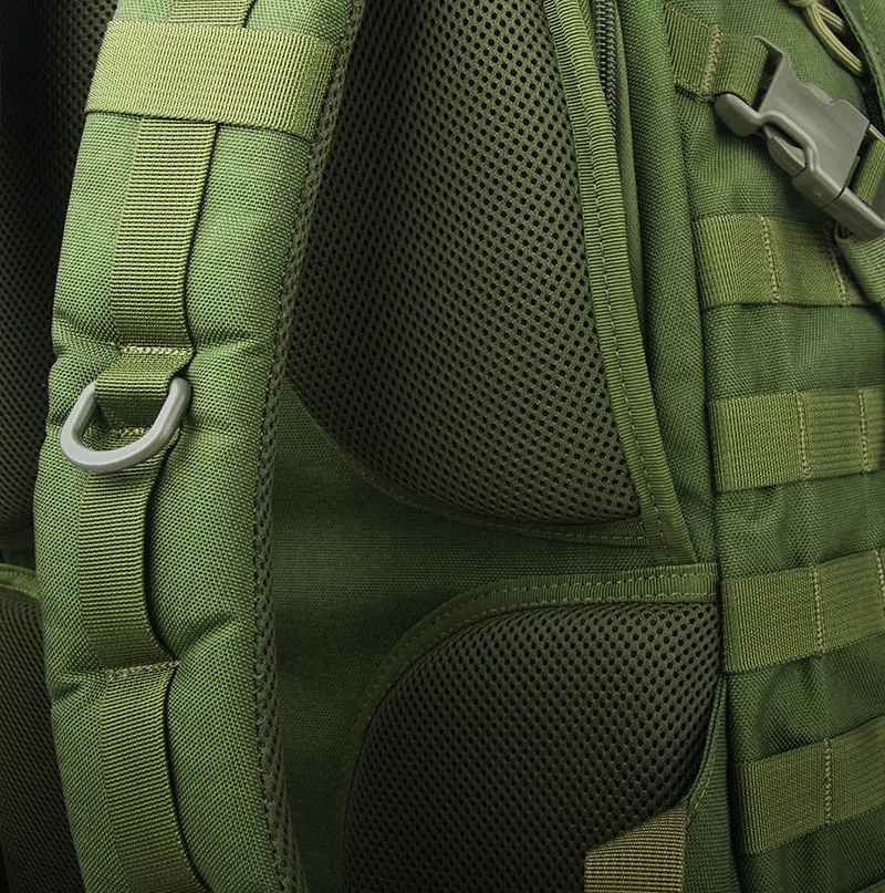 The backpack is built from 1000D waterproof nylon, reinforced with 420D lining, high-strength wear-resistant webbing, and extra-strong stitching. This combination ensures the pack withstands heavy use in demanding environments. Every seam is carefully sewn with double-line reinforcement and bar-tack stitching, boosting its longevity and reliability.