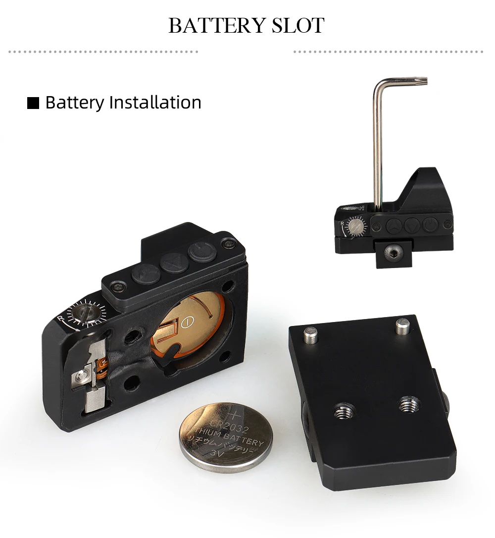 Powered by a CR2032 battery, the sight delivers efficient energy consumption for extended use. For shipping compliance, batteries are not included, ensuring safe delivery.