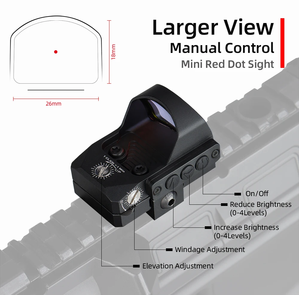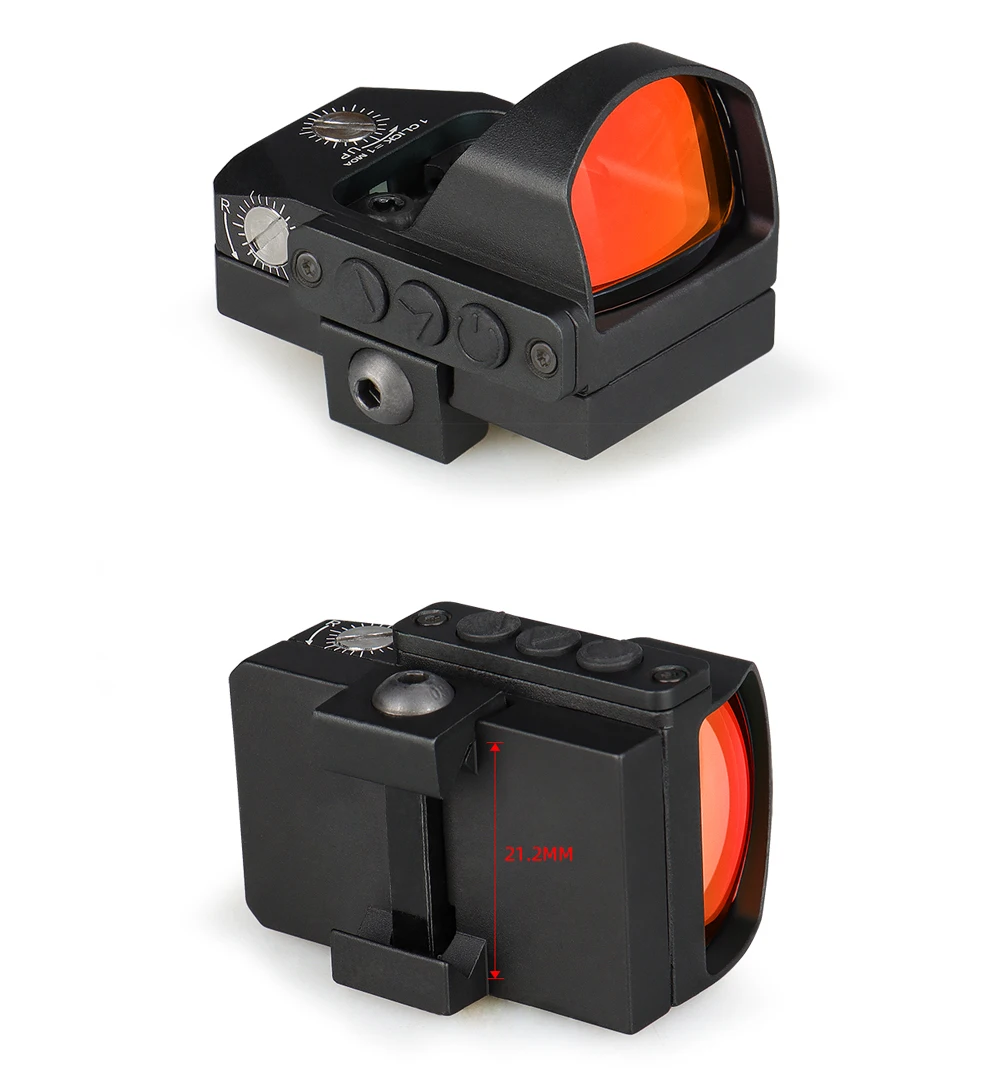 With a 21.2mm mounting requirement, this red dot sight fits securely onto standard 20mm rails commonly found on rifles, carbines, and airsoft replicas. The compact footprint makes it compatible with a wide range of setups, from hunting rifles to tactical handguns.