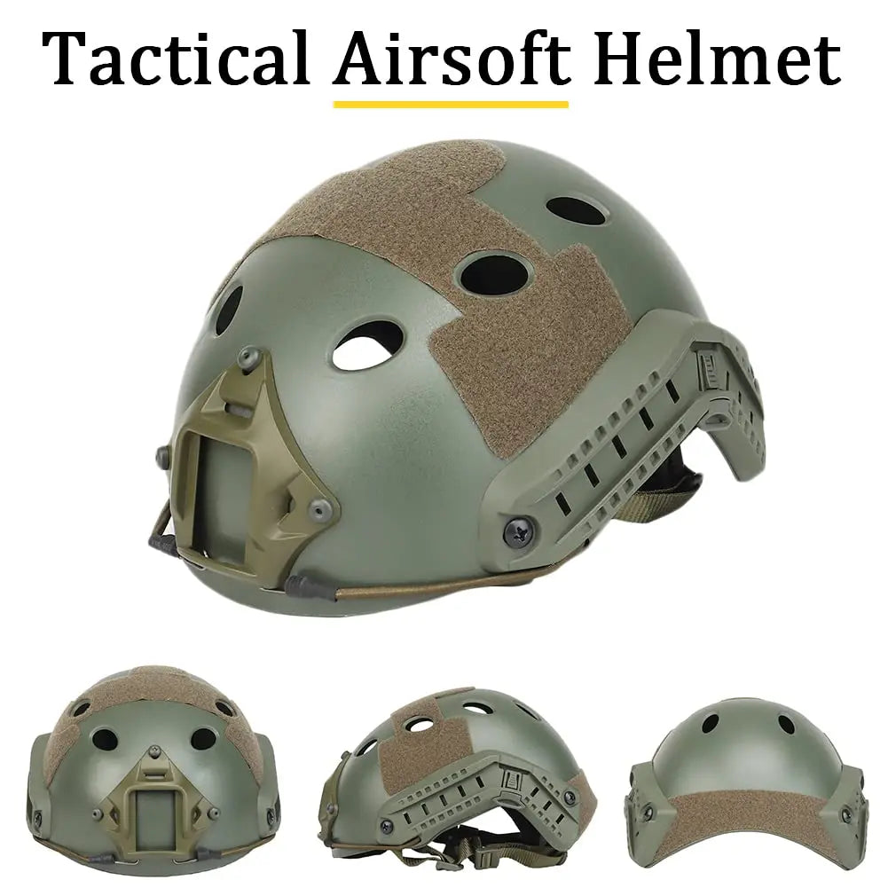 ➤ PJ-Type FAST Helmet: ABS material. Weighing only 0.65kg, with eight additional ventilation holes at the top, it is ideal for all kinds of fast action and combat. For head size 53-60cm (21.6-24.5 inch).