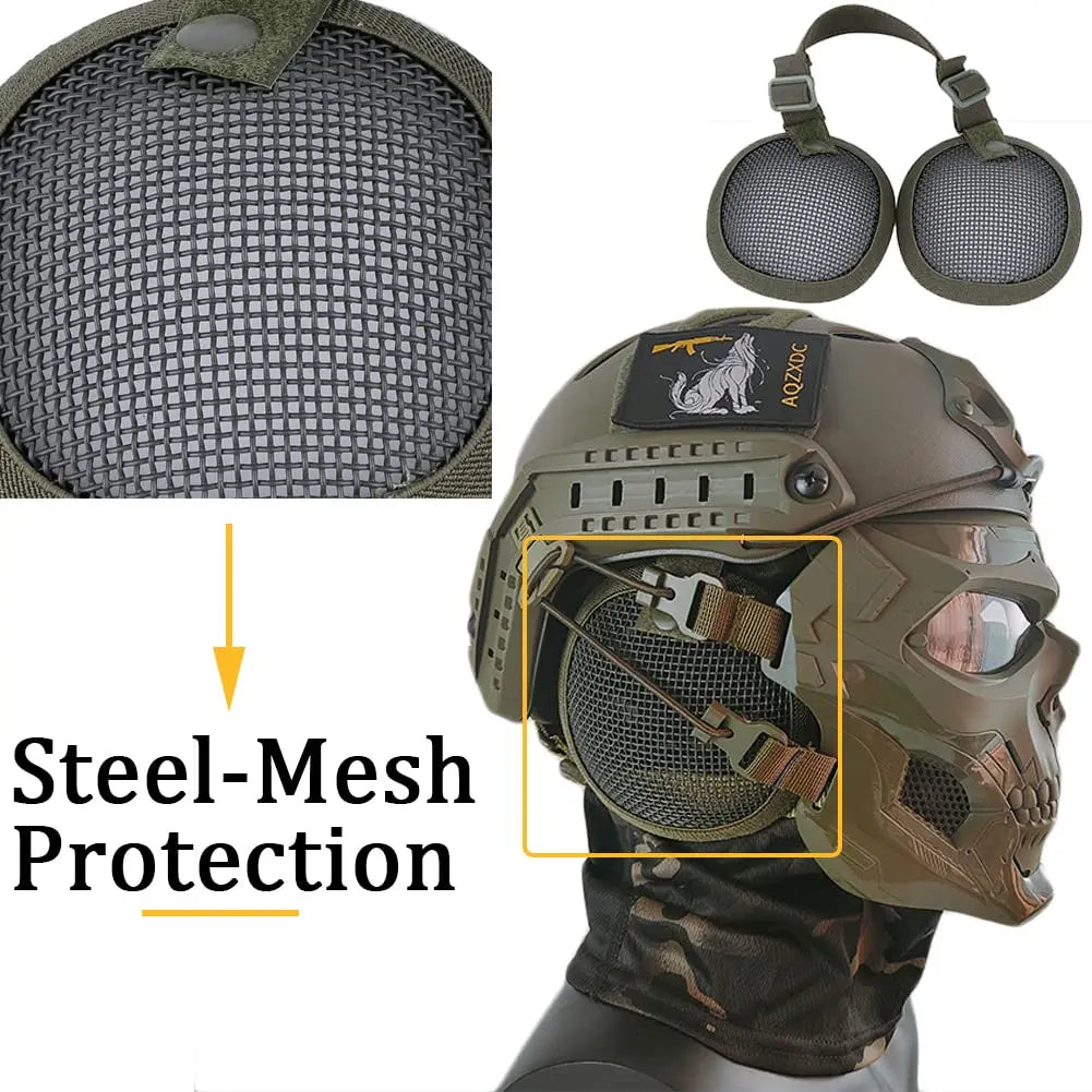 ➤ Steel mesh earmuffs: perfect to resist paintball and BB from the side, to protect the ears. Steel - mesh material, adjustable length.