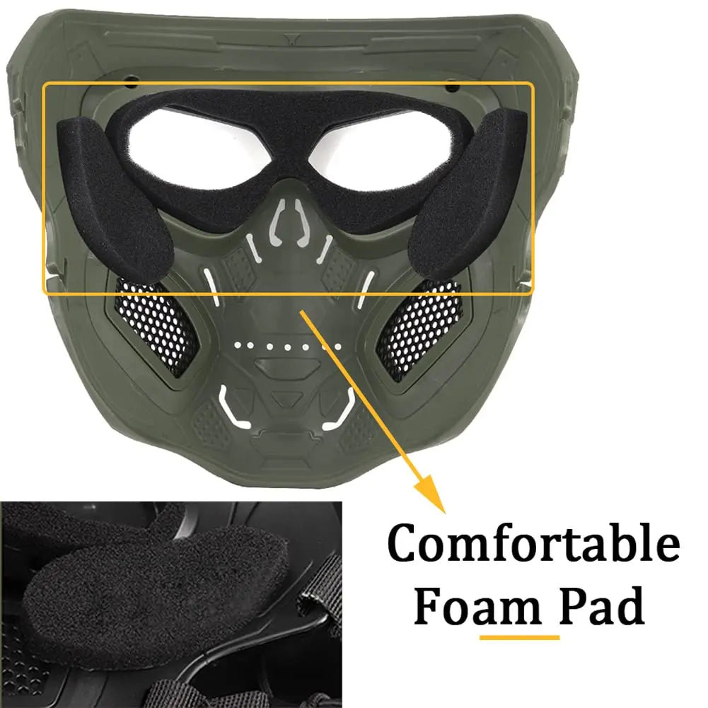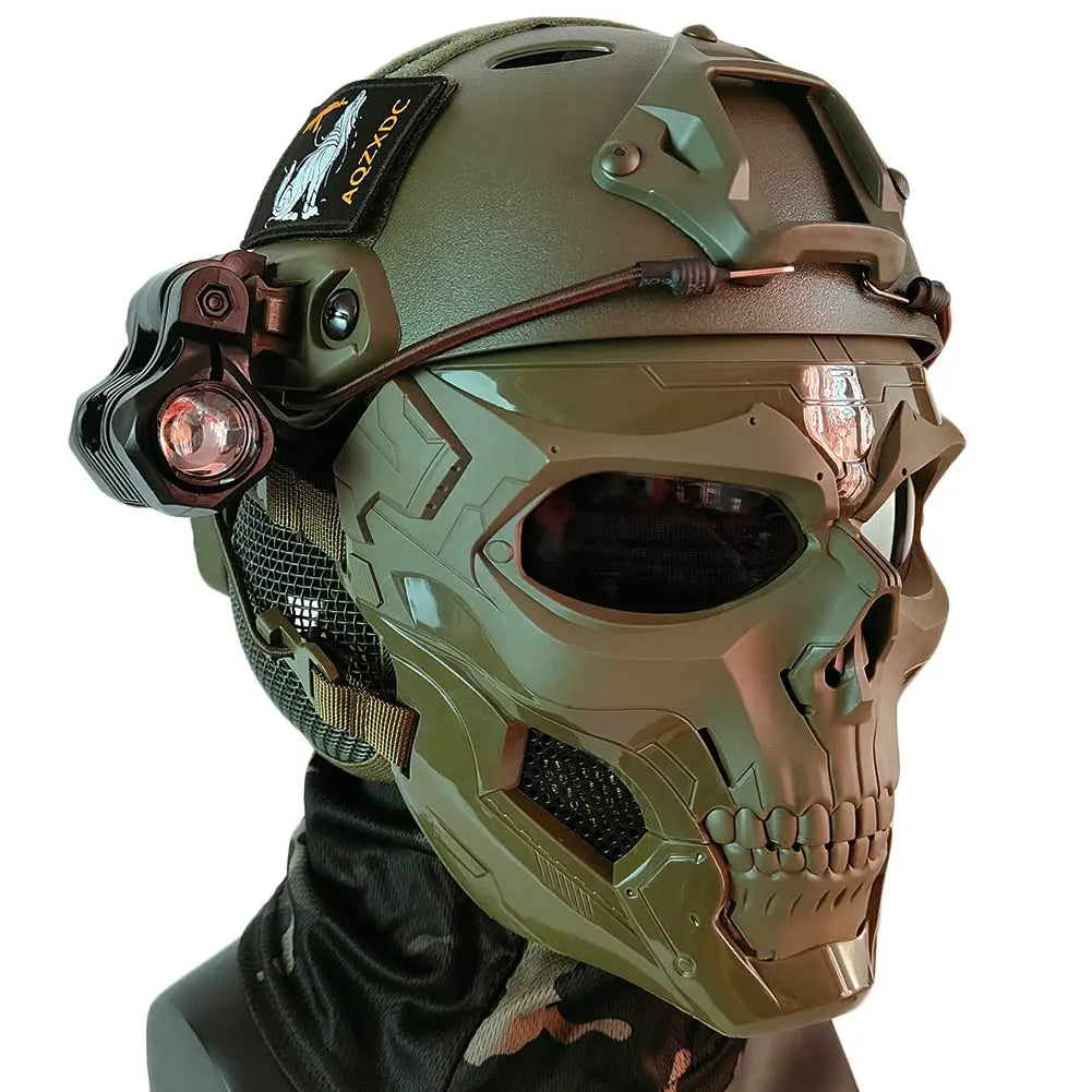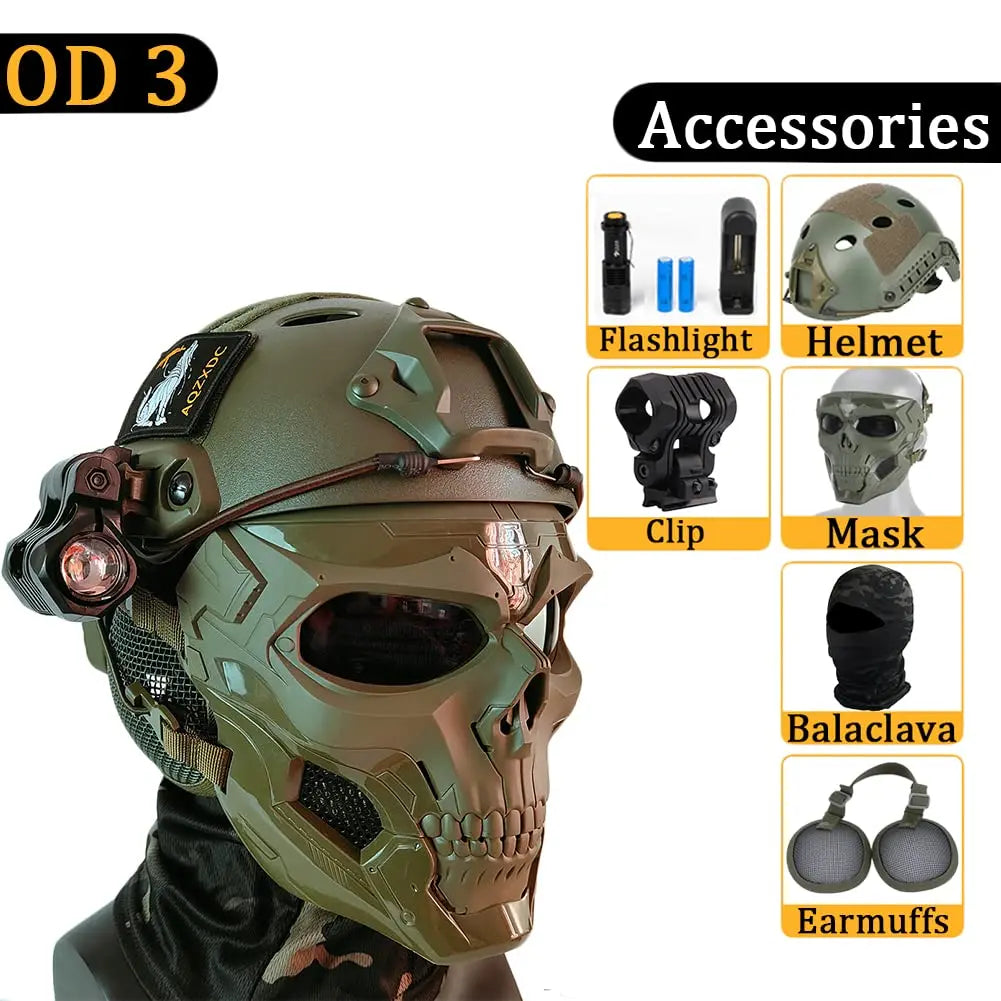 FAST Airsoft Helmet, with Full-Face Skull Paintball Mask, Steel Mesh Earmuffs, Flashlight, for Outdoor Shooting, Hunting, Games