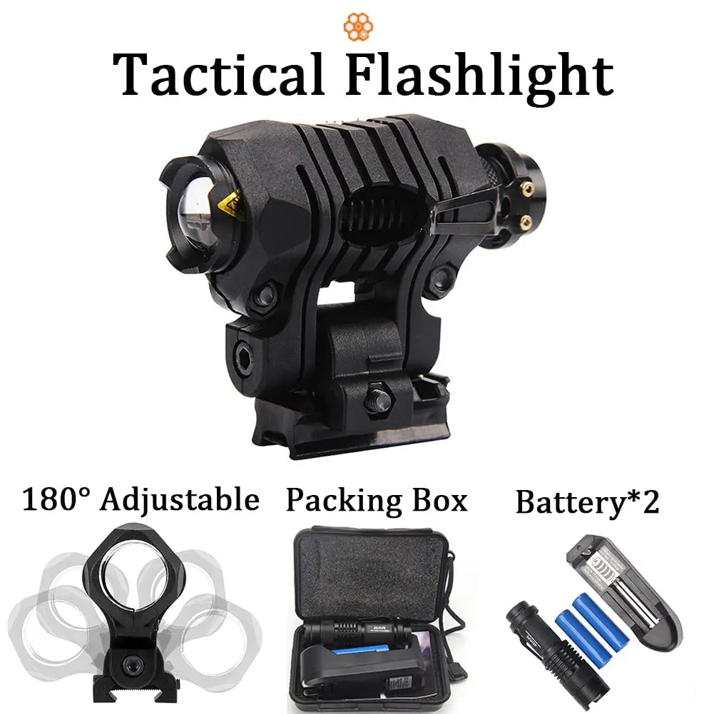 ➤ Zoom Flashlight: Three adjustable: strong light, low light, strobe. Comes with a charging compartment * 1, battery * 2, storage box * 1. Eliminate the trouble of frequent battery replacement. Adjustable flashlight clip, adaptable to all 20-25mm caliber flashlight.