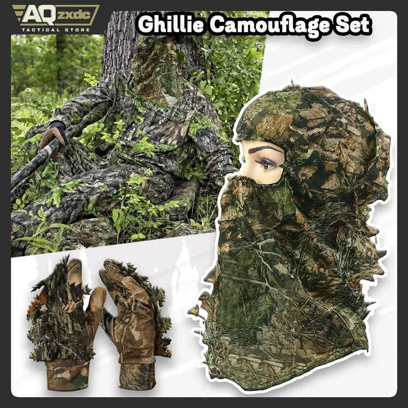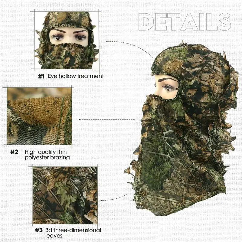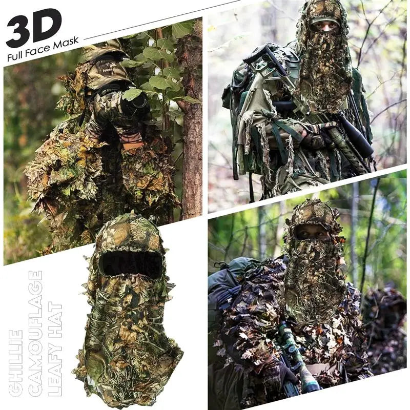 Ghillie Camouflage 3D Leafy Full Face Mask Camo Hunting Gloves, Camo Hunter Hunting Accessories for Hunting Tactical Camouflage