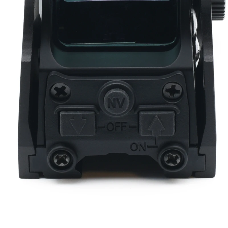 Equipped with NV (Night Vision) functionality, this optic allows compatibility with night-vision devices, giving players an edge during low-light missions or evening games. The brightness settings are designed to remain visible without overpowering your night-vision gear, making it a versatile tool for a variety of environments.