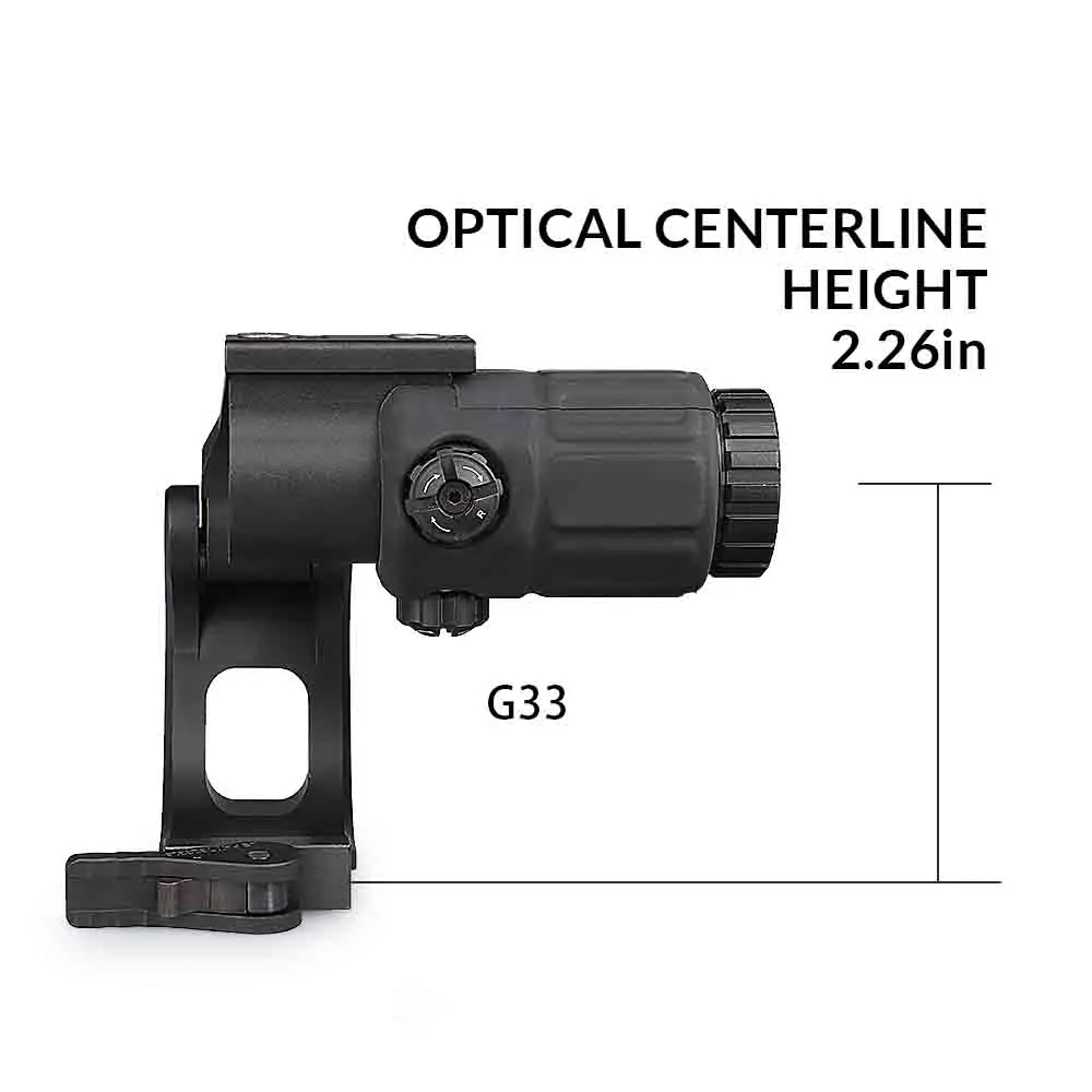 The mount elevates your magnifier to a 2.26-inch centerline, delivering a comfortable and consistent sight picture. This height is ideal for modern rifles and co-witness setups, ensuring fast transitions and improved ergonomics when switching between optics.
