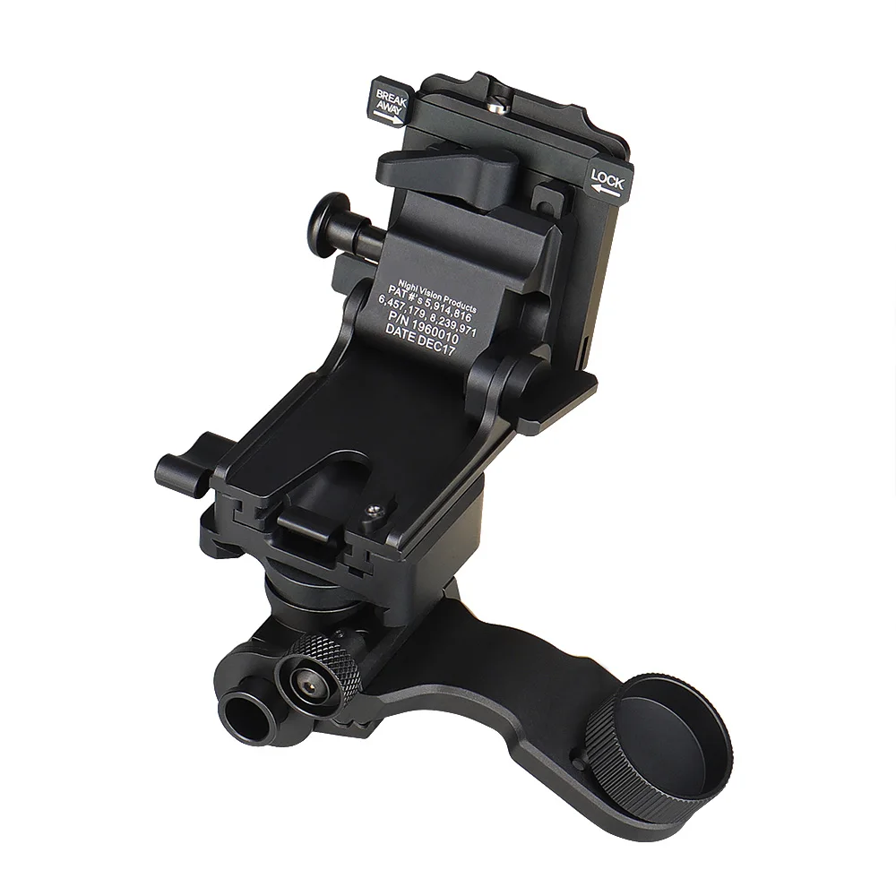 The integrated breakaway mechanism protects both the user and the NVG unit during sudden impacts or high-intensity activities. Operators can toggle between locked or breakaway mode depending on mission requirements. A top-mounted adjustment screw allows you to set the release force to your preference.