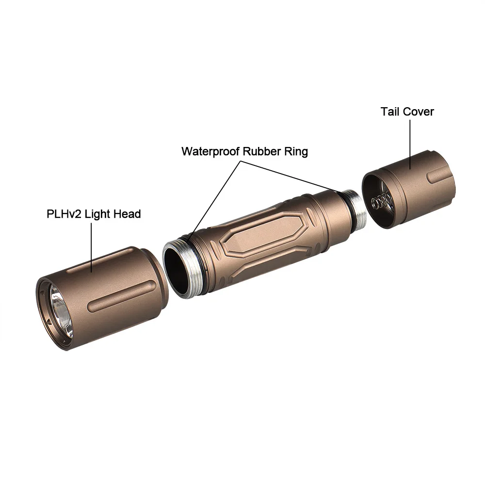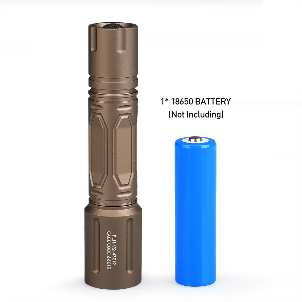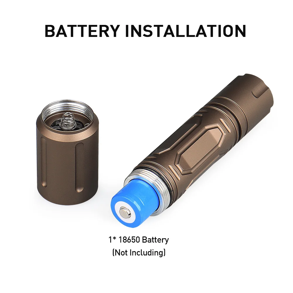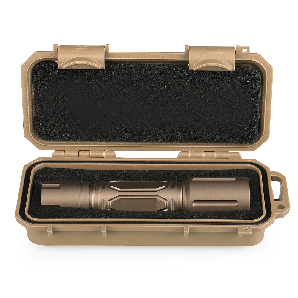 Crafted from high-quality aluminum, the flashlight offers reliable strength while remaining lightweight. The hard anodized finish increases durability and resistance to field wear and harsh environments.